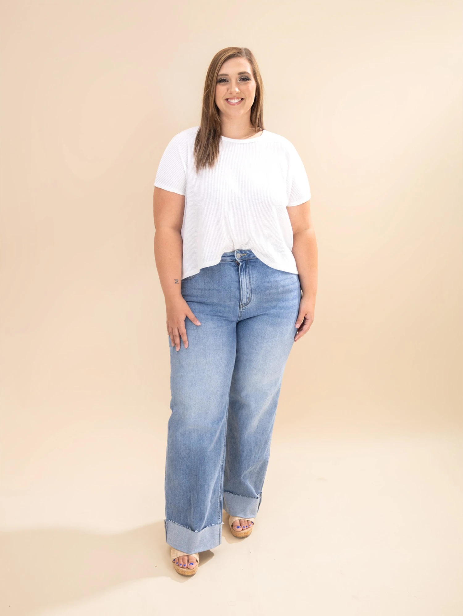 Features: Button/Zipper Waist, High Rise, 90’s Straight Leg, Cuffed