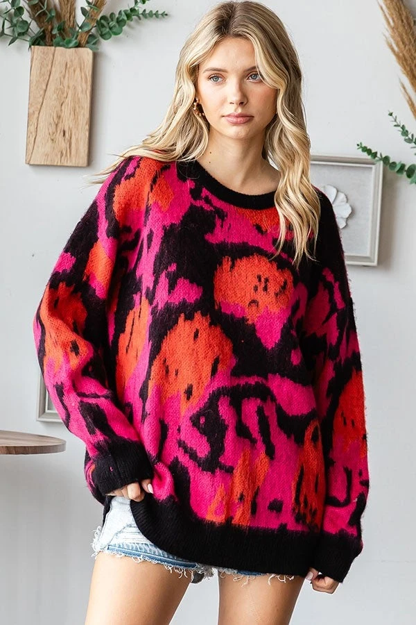 Features: Abstract Pattern, Round Neck, Sweater