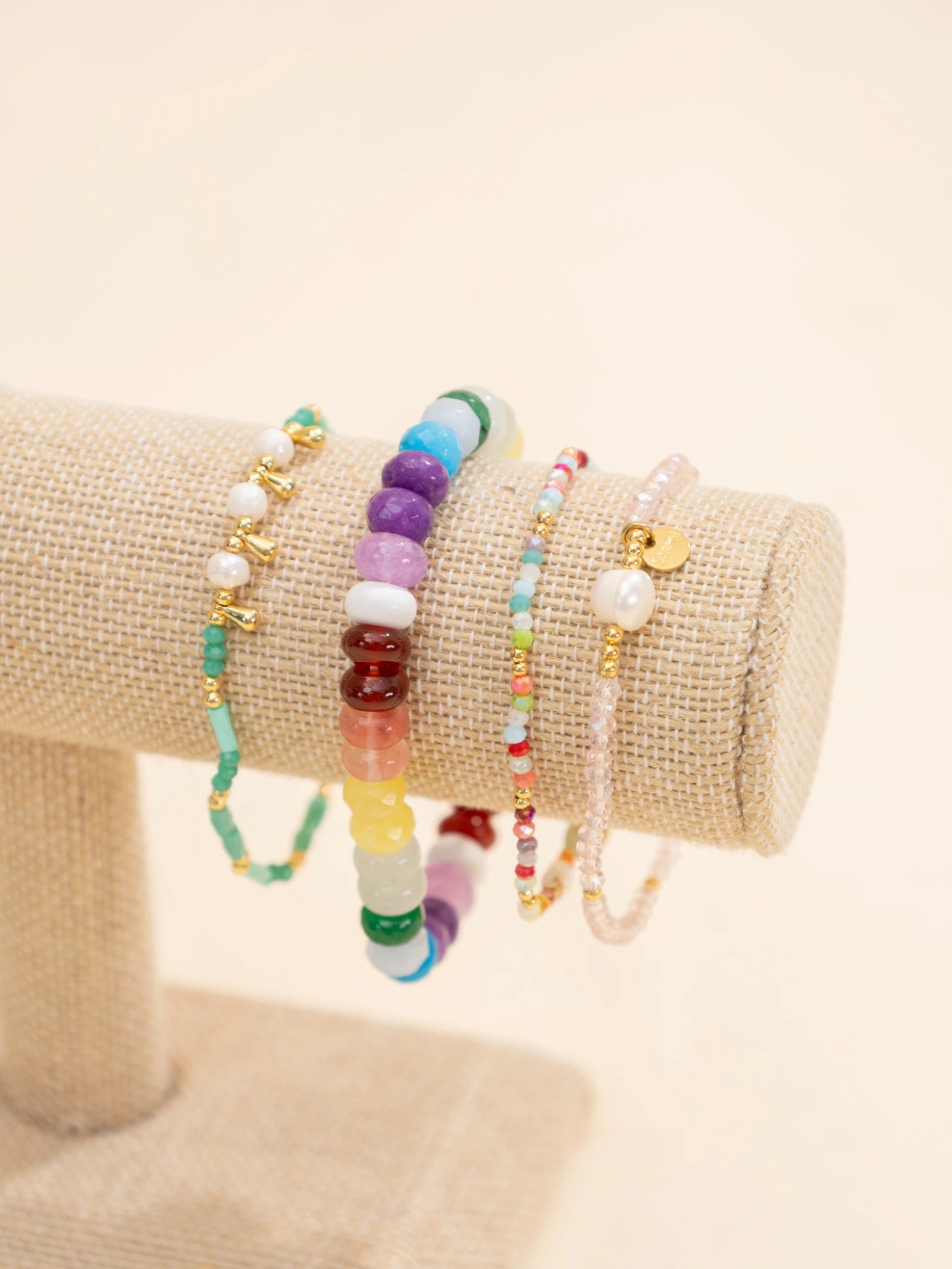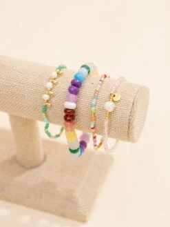 Features: Set Of 4 Color Beaded Stretchy Bracelets