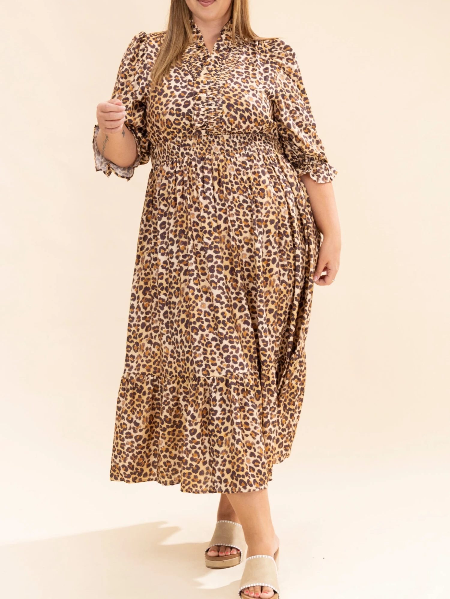 Features: V Neck, Puff Sleeves, Printed