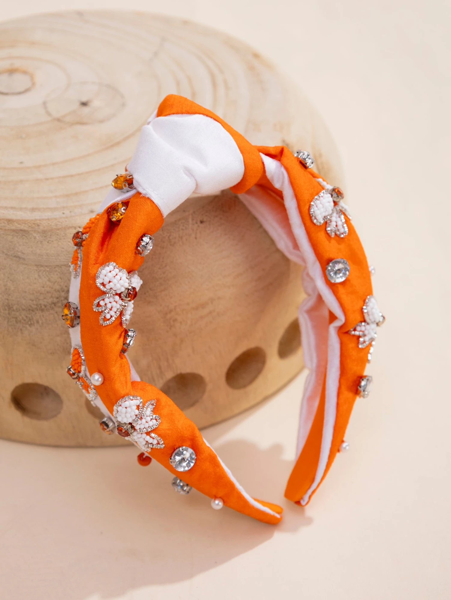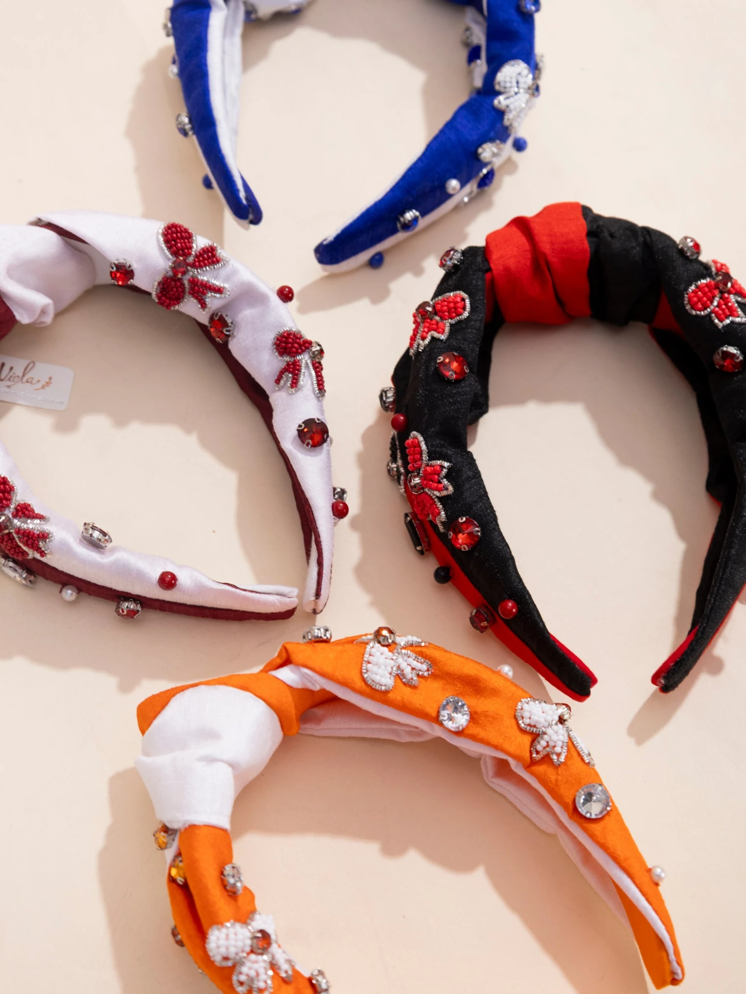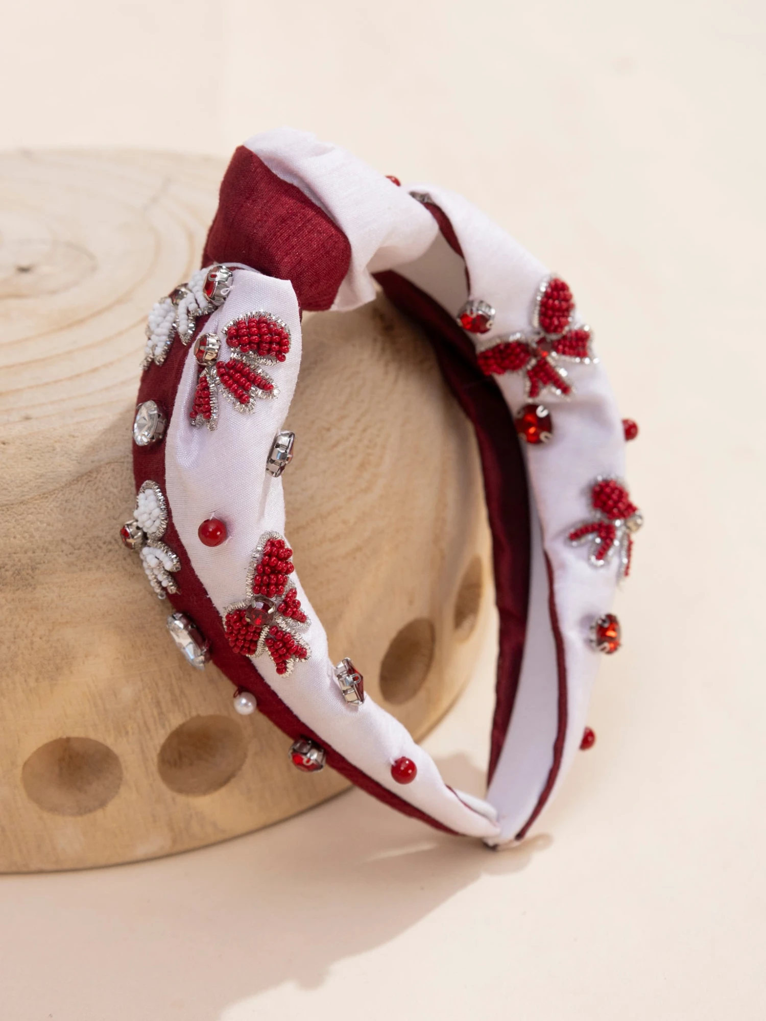 Features: Top Knotted, Bow Details with Rhinestones Headband