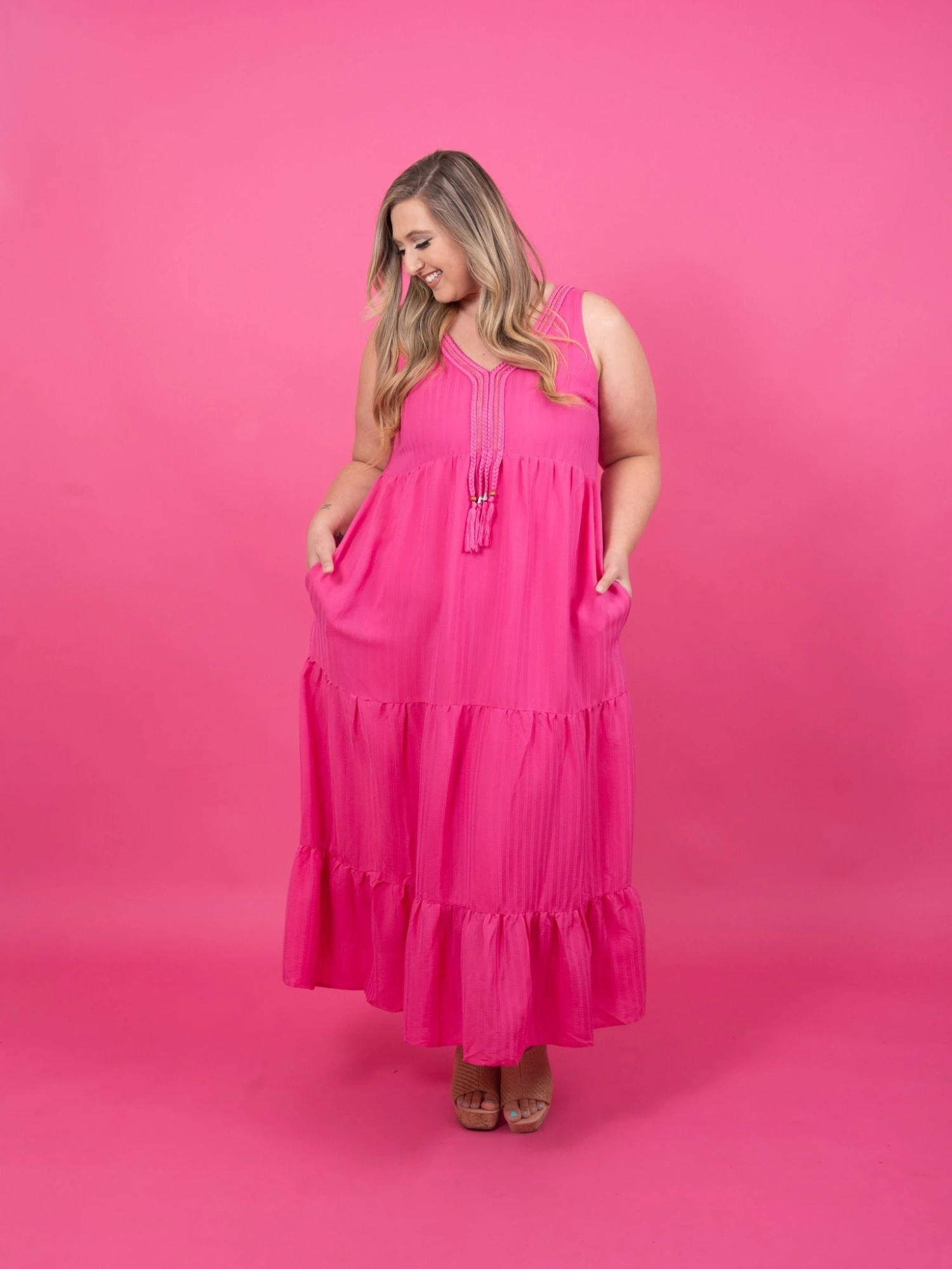 Features: V Neck, Sleeveless, Pockets, Lined, Braided Tassels