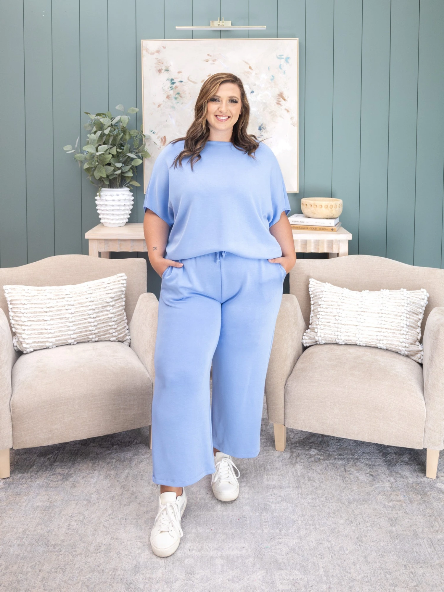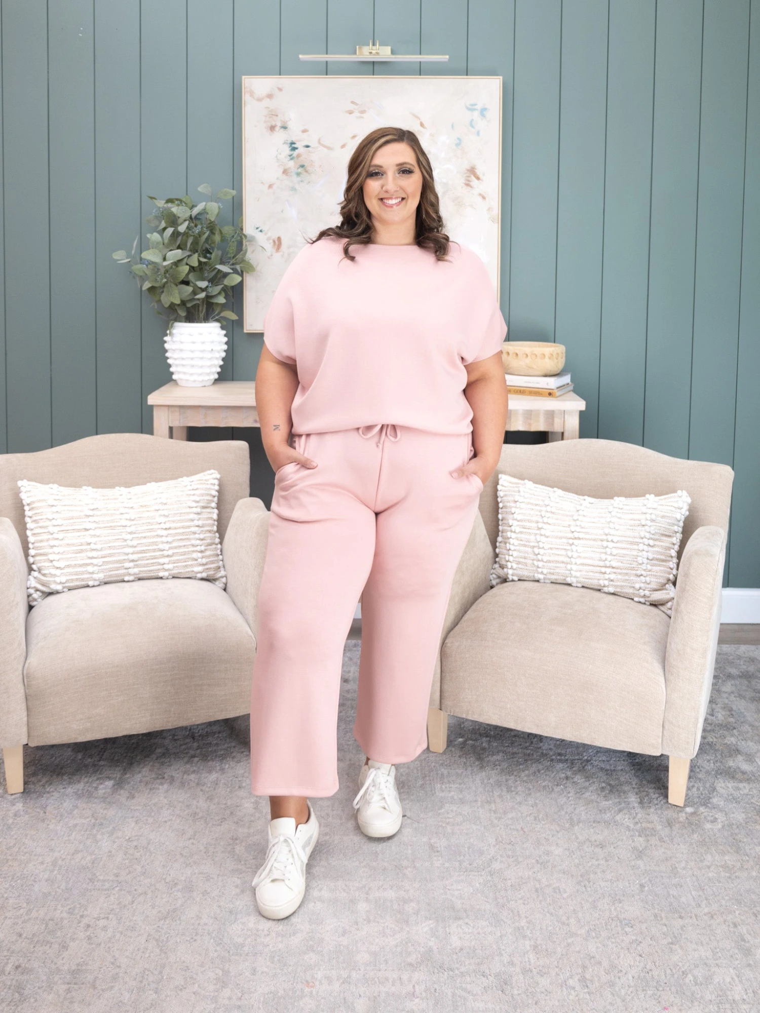 Features: Drawstring Waist, Pockets, Scuba Cropped Wide Leg Pant