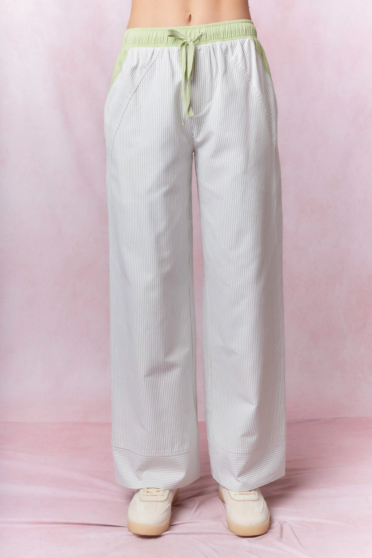 Features: Contrast, Tie Waist Detail, Stripe, Pants, Pockets