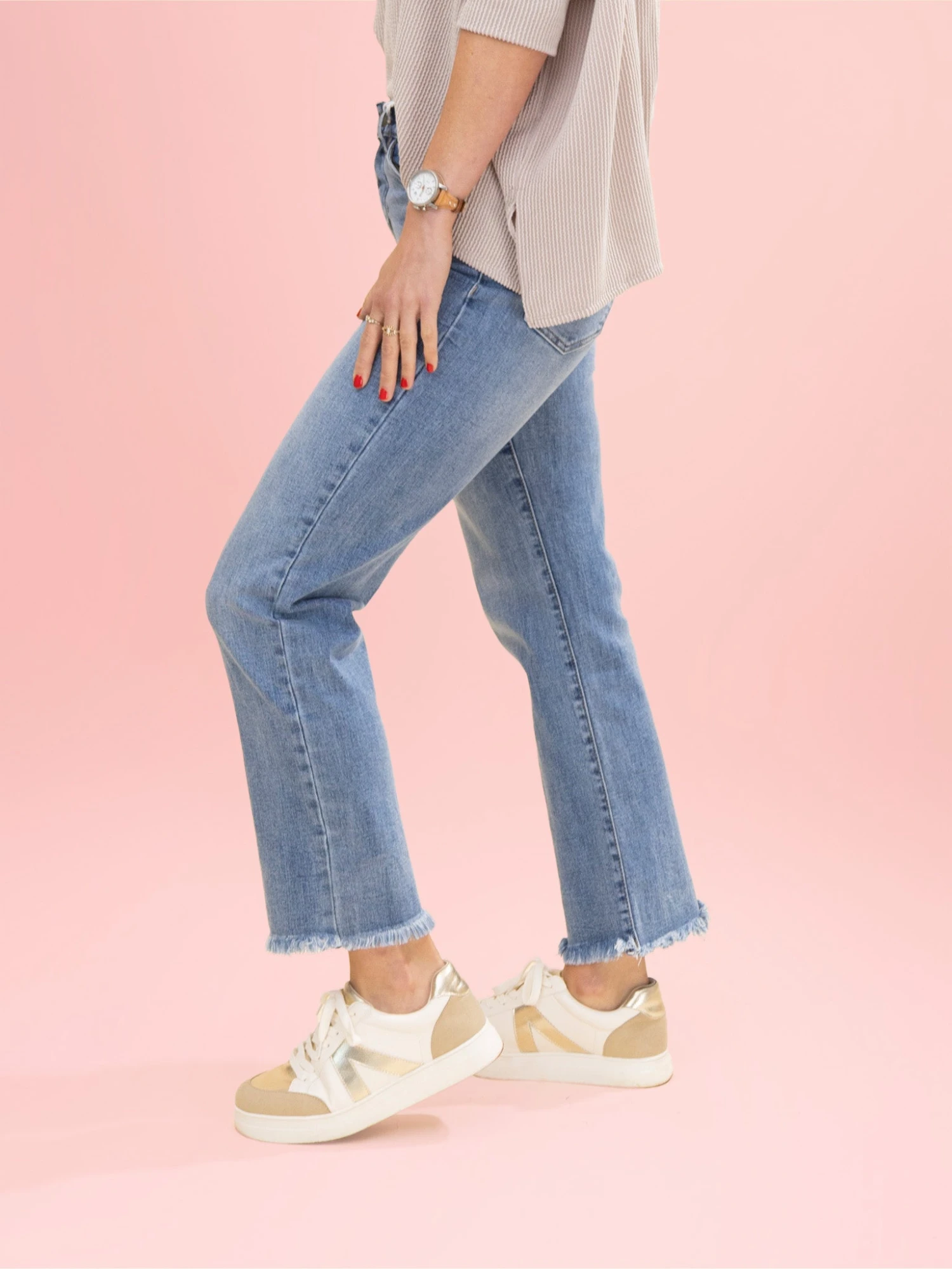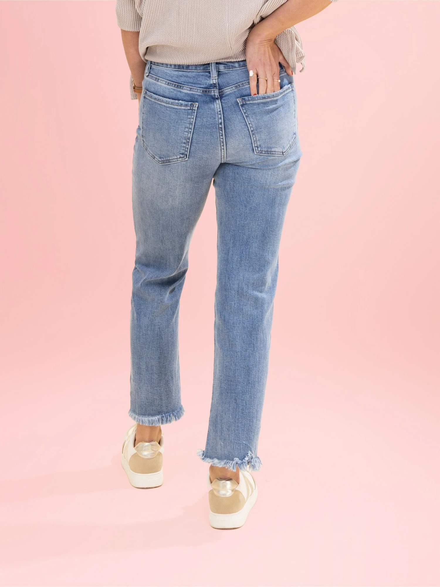 Features: Button/Zipper Fly, High Rise, Frayed Hem, Full Length Jean