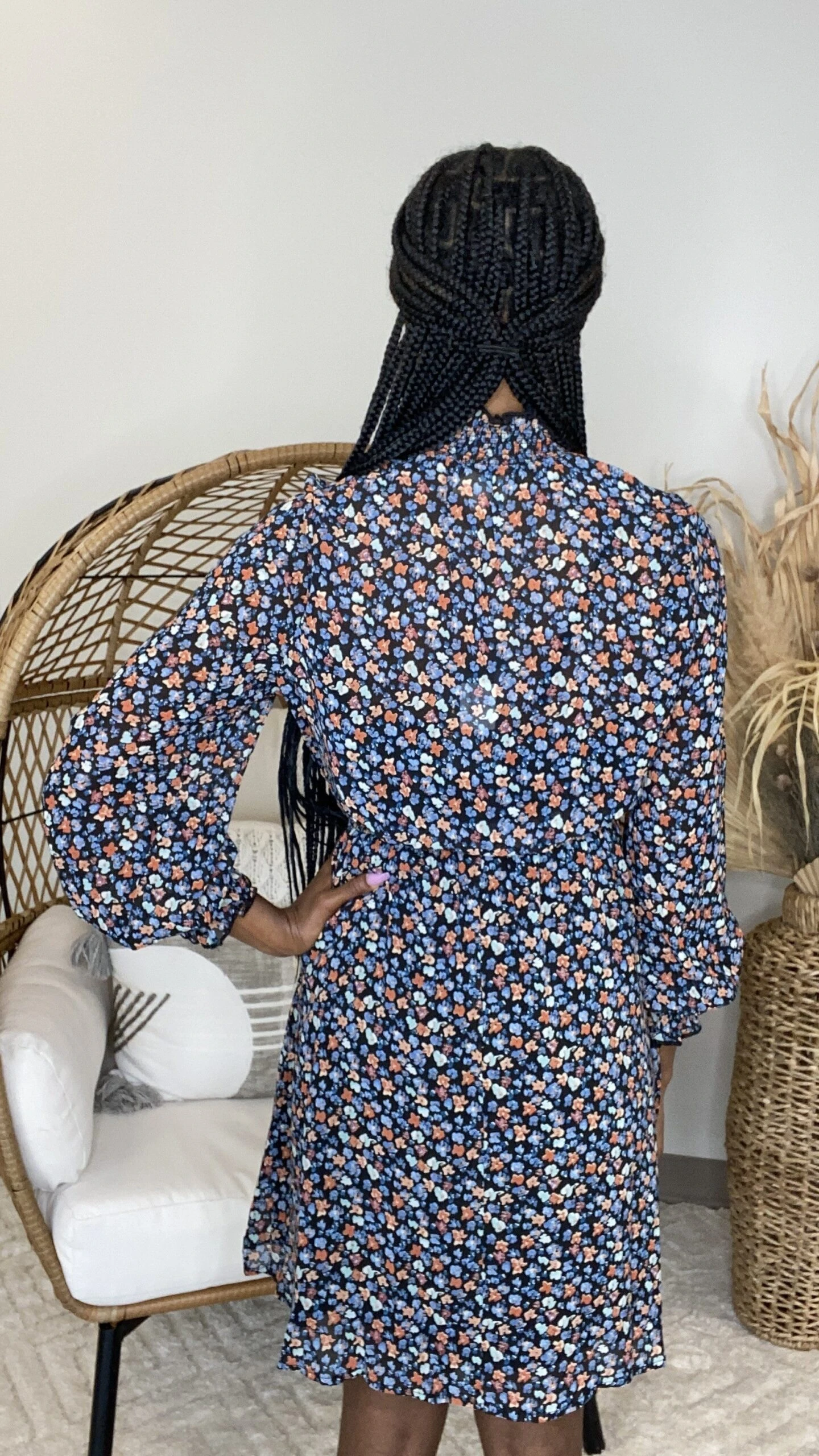 Features: Mock Neck, Smocking Band, Long Sleeves , Floral, Lined