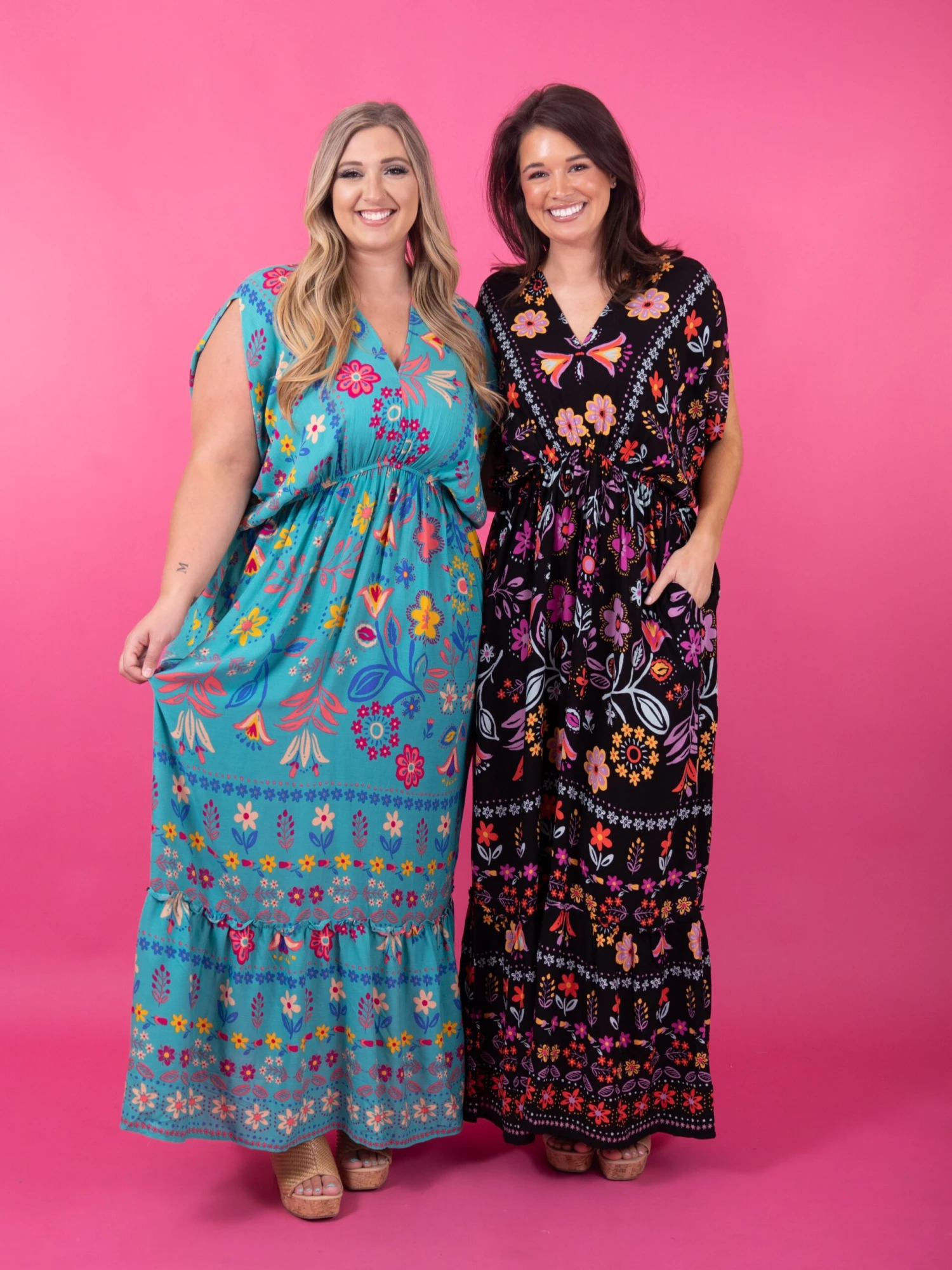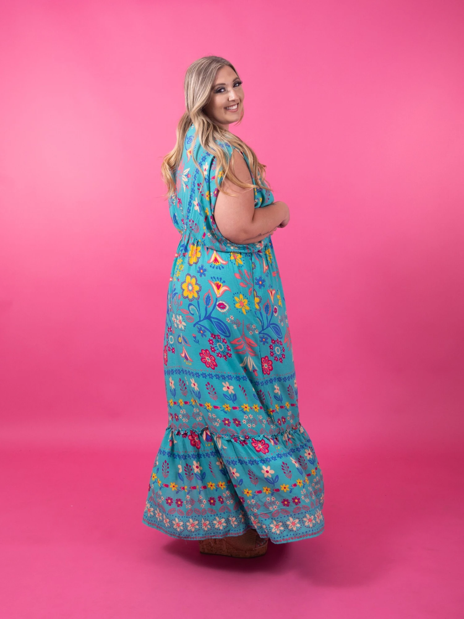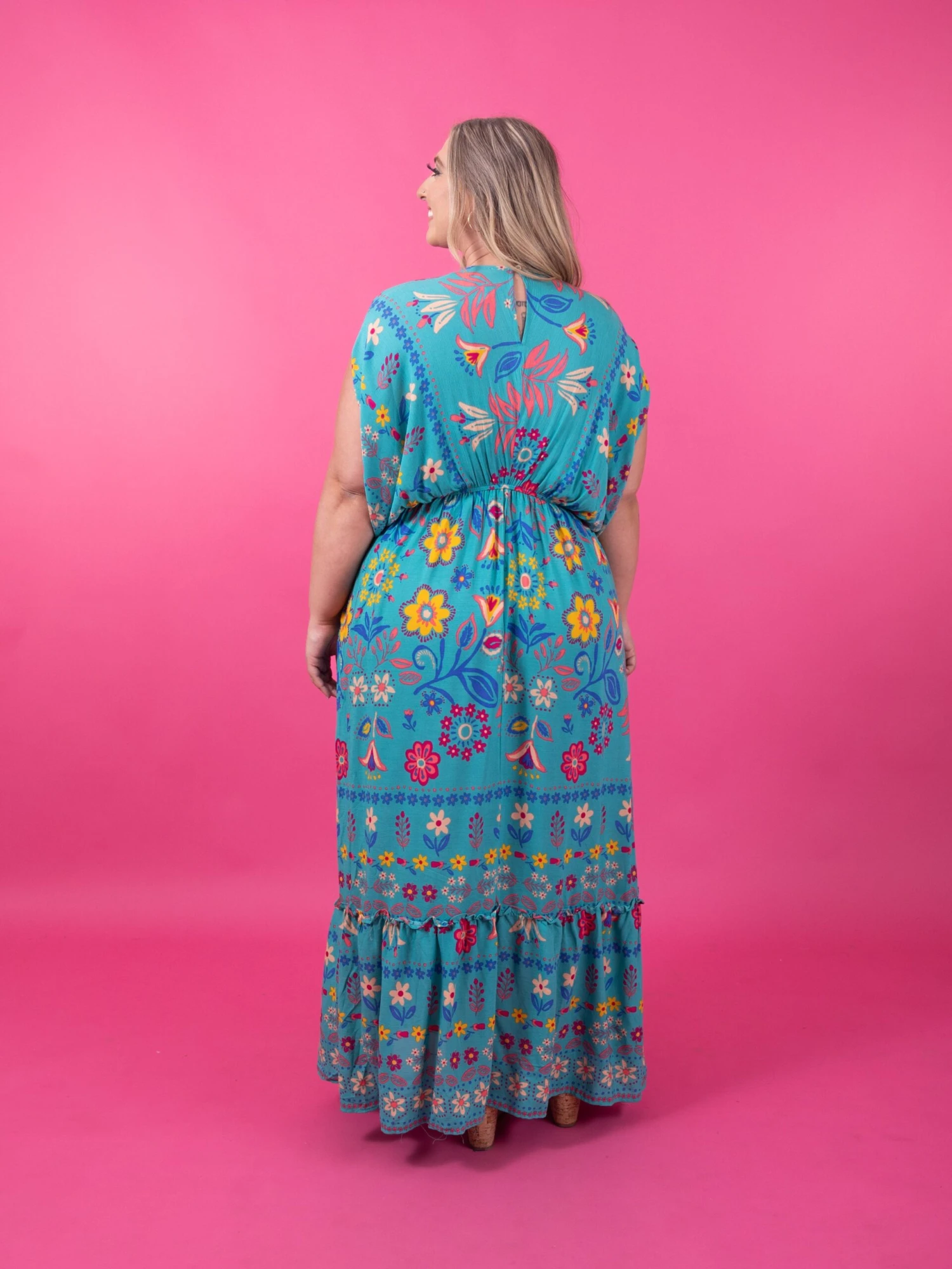 Features: Dolman Sleeves, V-Neck, Tiered, Print, Pockets