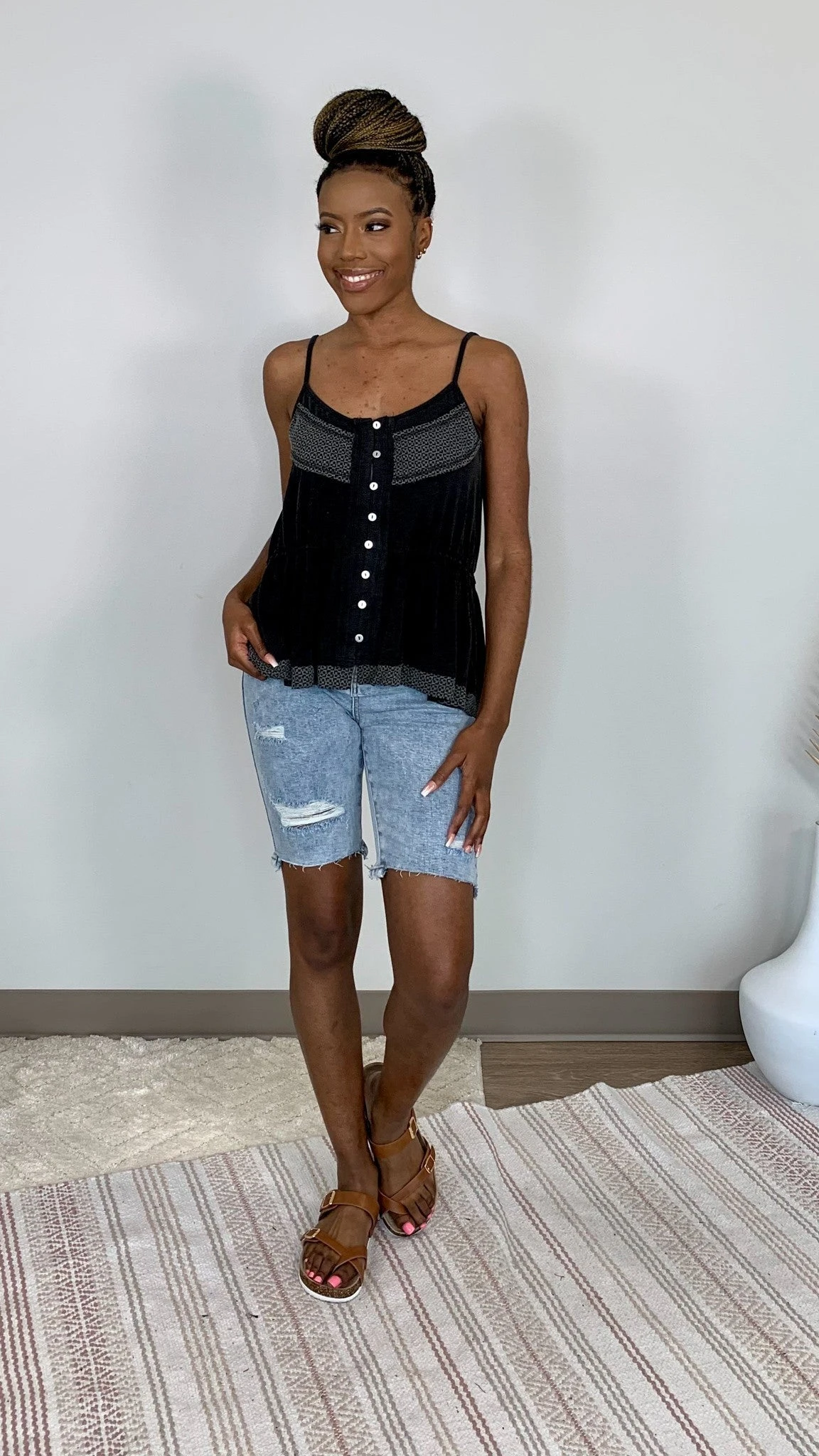 Did someone say bermuda high-rise? Because we’ve got it in the Every Chance I Get shorts! They are also the perfect light-wash with some distressing. What will you wear them with – crop top, body suit, and/or a t-shirt??