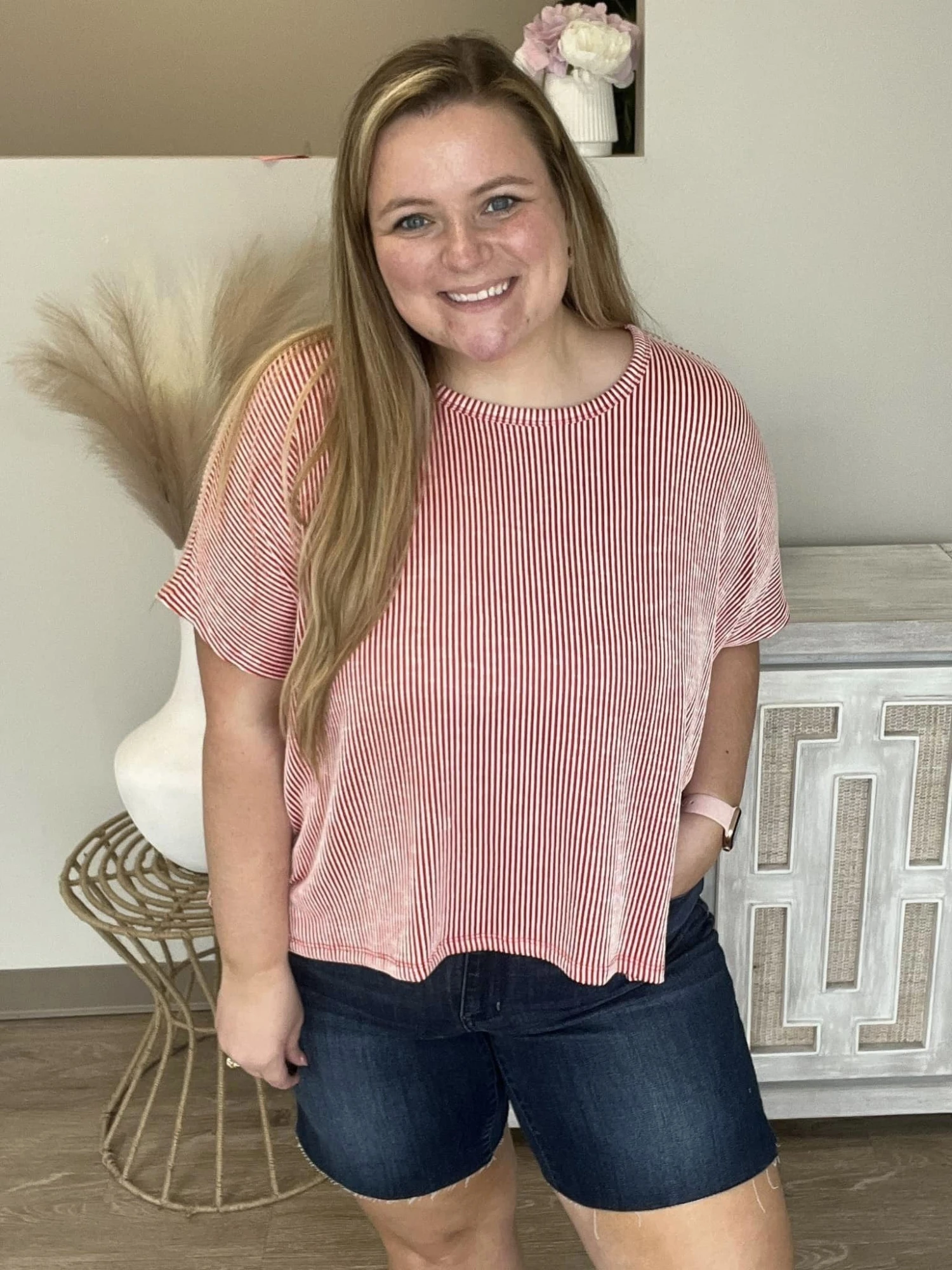 The “Finest Feel Shorts” are just what you need! With a mid rise design and cut off detail, you will be looking and feeling good in these! Perfect for the summer, snag a pair before they sell out!