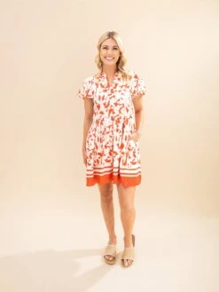 Features: V Neck, Ruffle Sleeves, Pockets, Lined, Floral Printed With Striped Hem