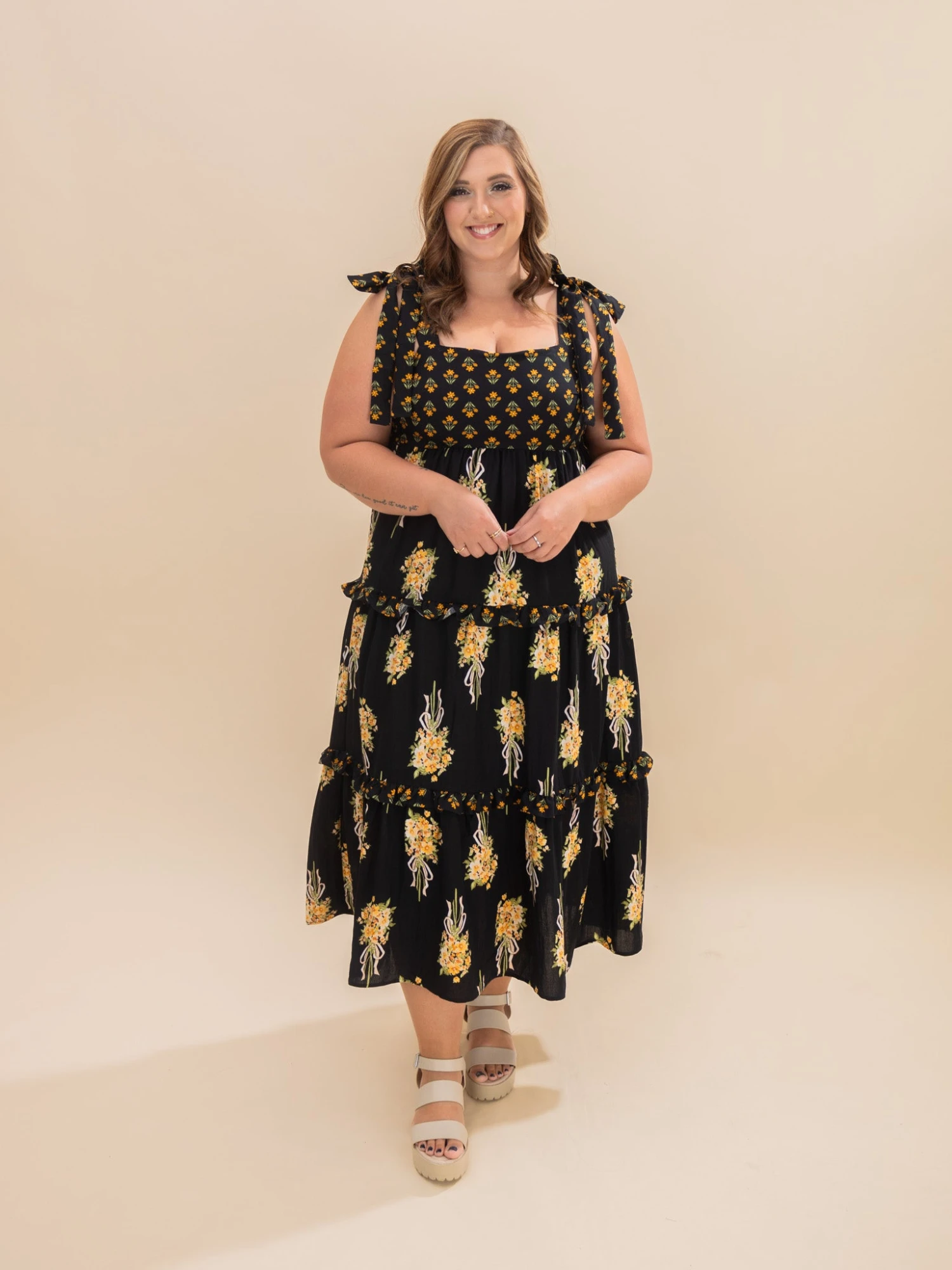 Features: Square Neck, Tie Straps, Lined, Floral Print