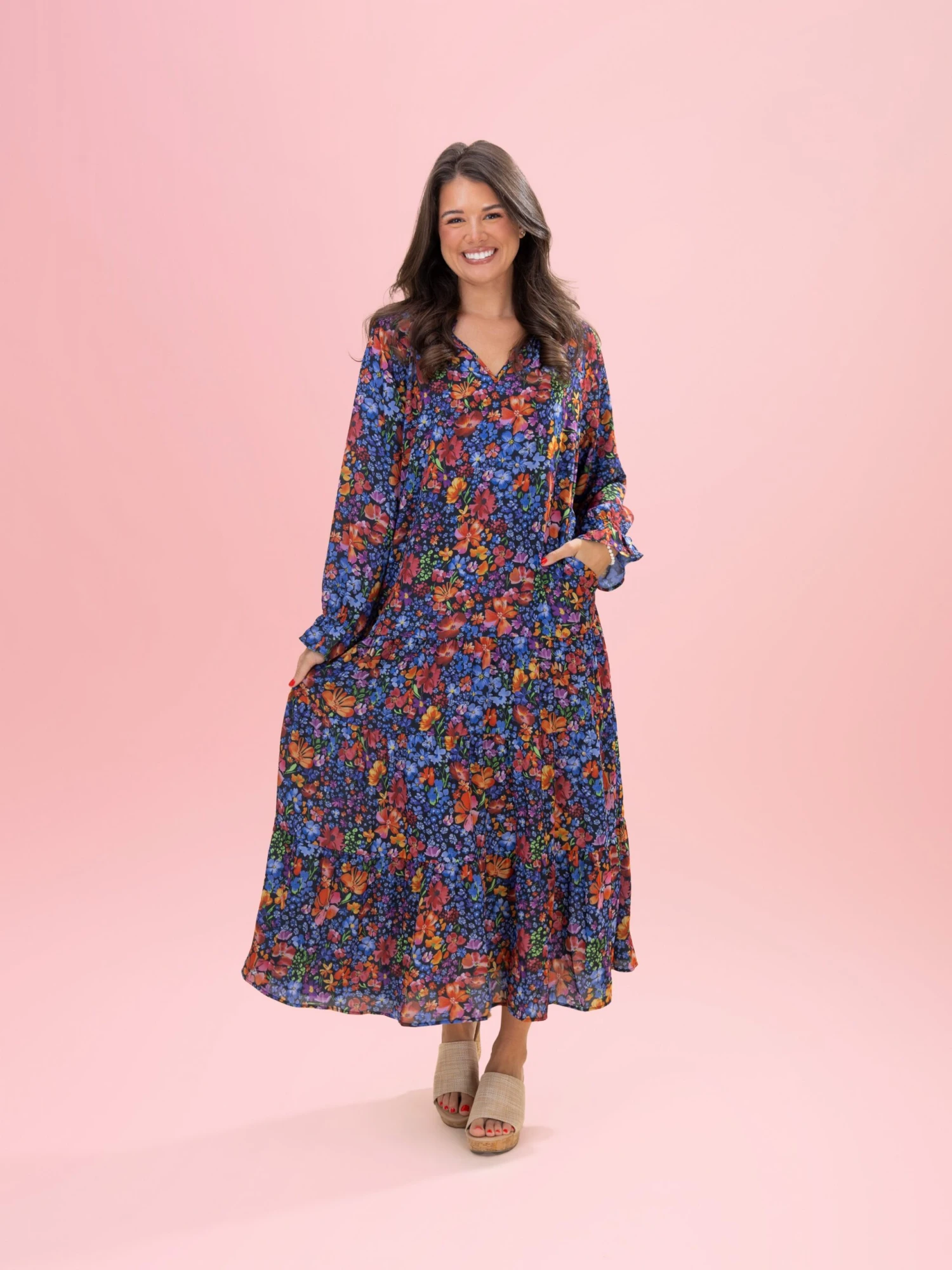 Features: Split Neck, Long Sleeves, Pockets, Printed