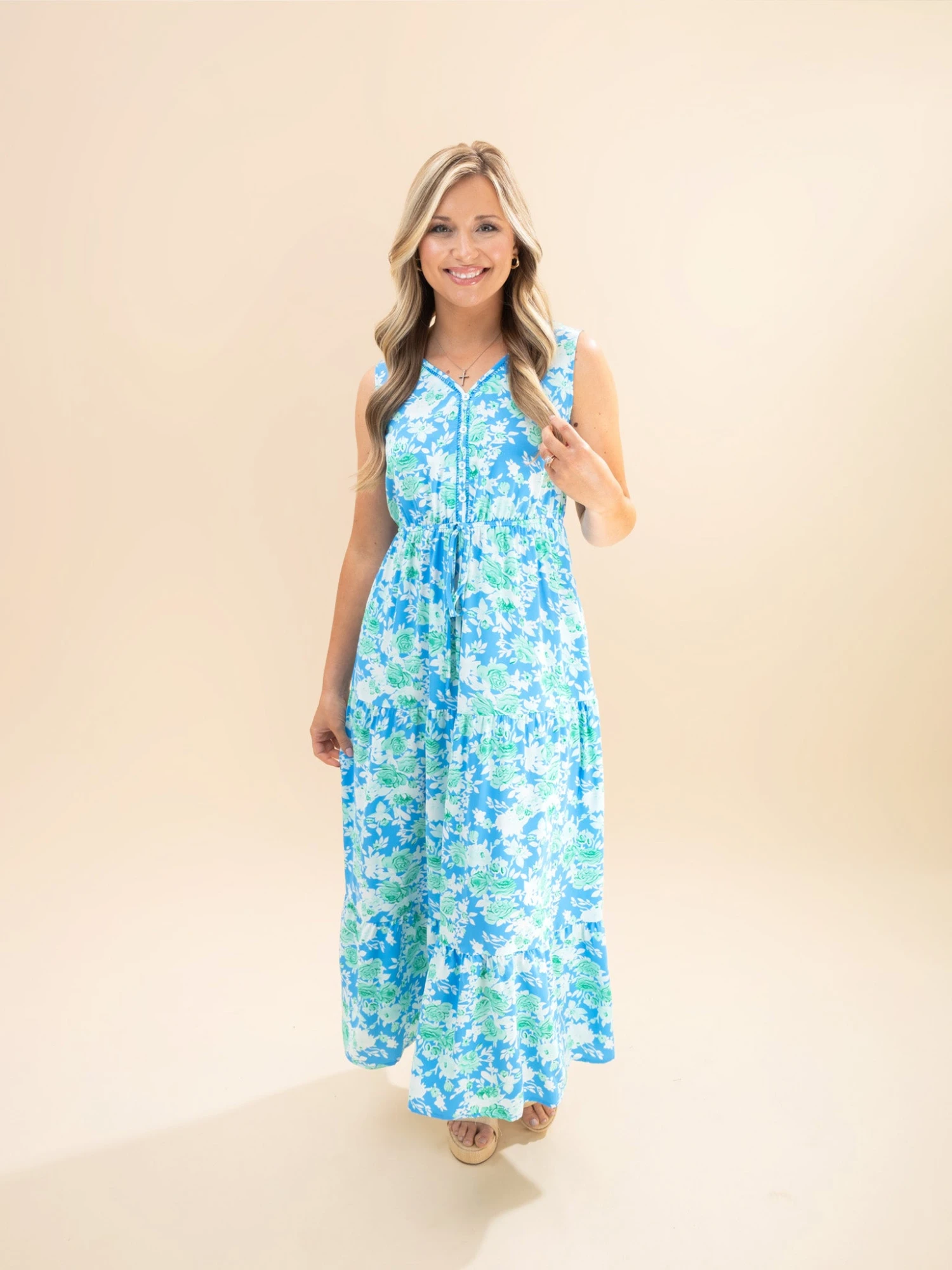 Features: V Neck, Sleeveless, Elastic Waist, Pockets, Floral Printed, Tiered