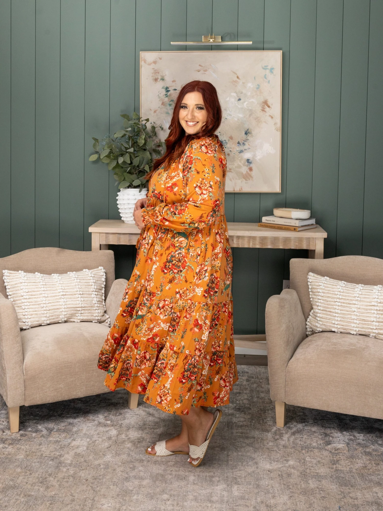 Features: Ruffle V Neck, Long Sleeves, Pockets, Floral Print