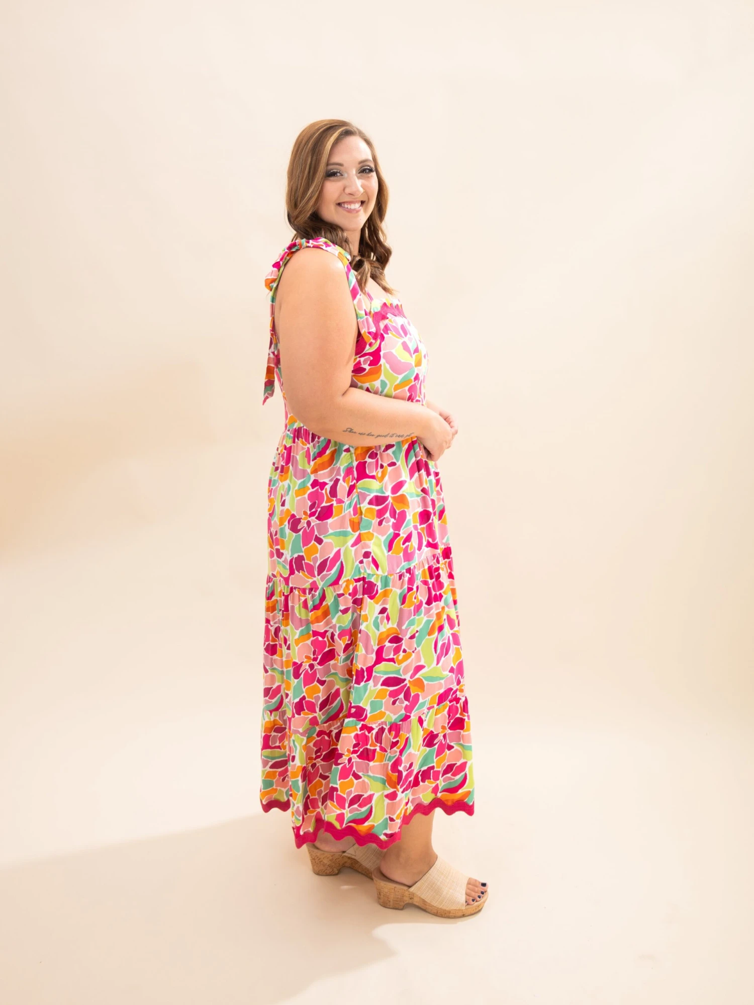 Features: Square Neck, Tie Straps, Printed