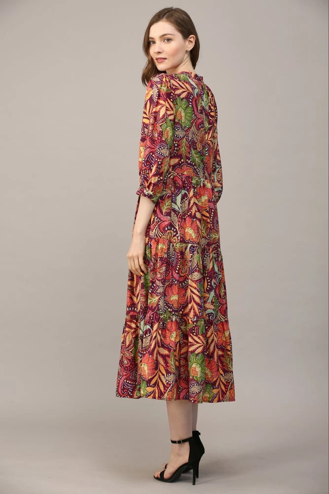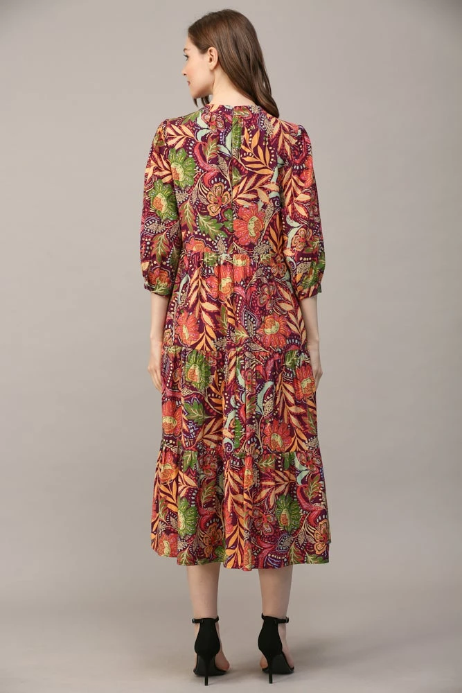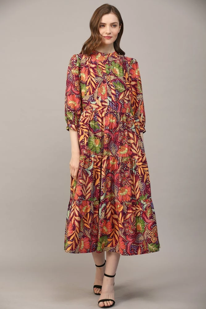 Features: Front Button, 3/4 Sleeve, Midi Dress