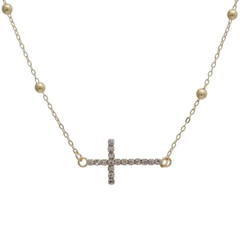 Features: Gold Chain, Crystal, Sideways Cross, Necklace