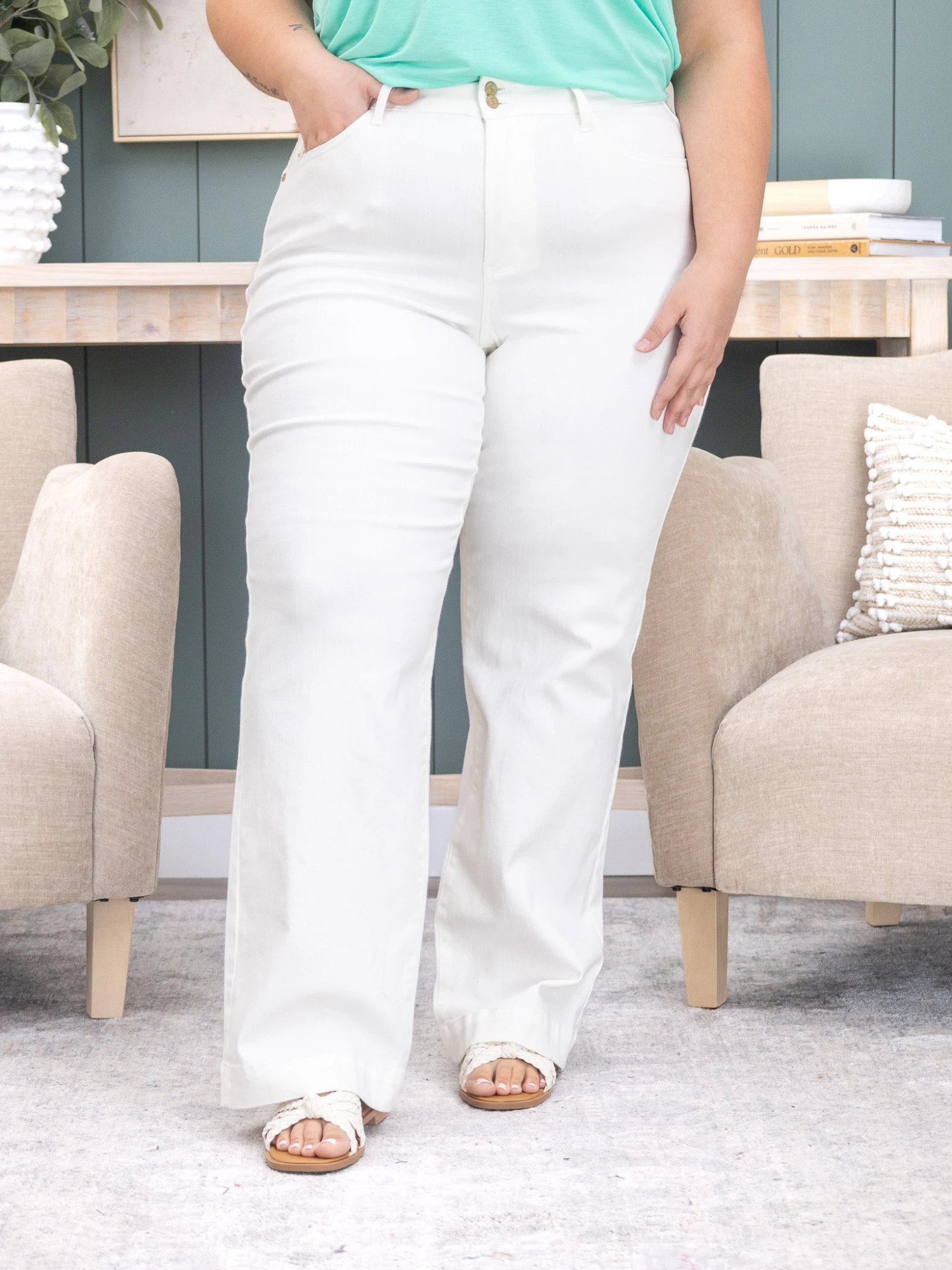 Features: Double Button, High Waist, Embroidered Coin Pocket, Wide Leg Trouser
