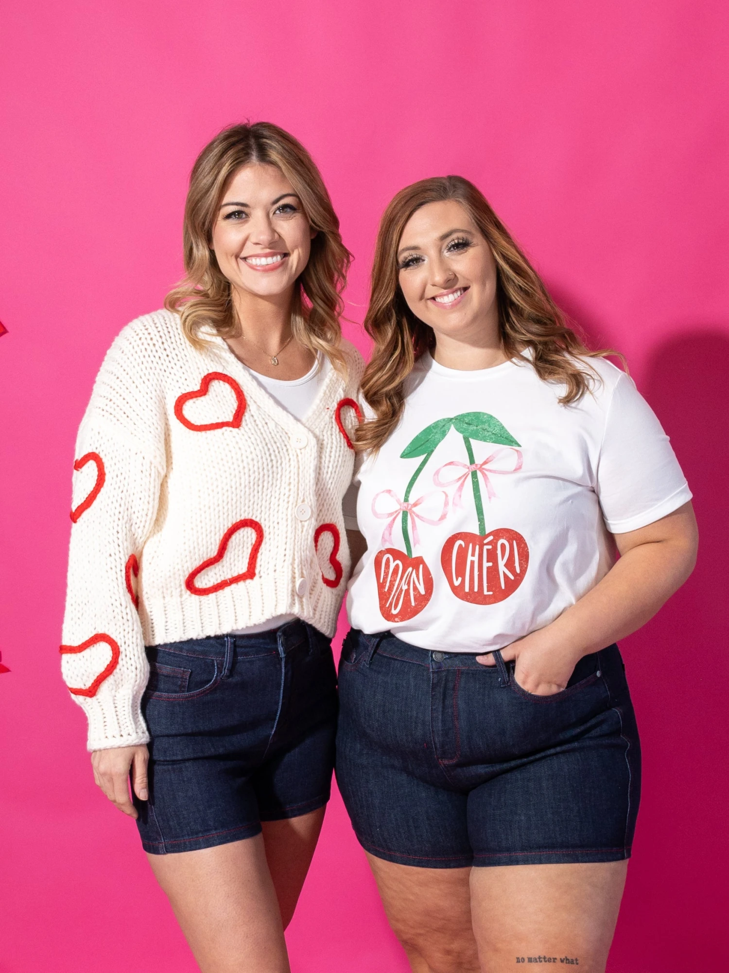 Features: Zipper Fly, High Waist, Heart Shaped Back Pockets, Red Stitching, Dark Wash