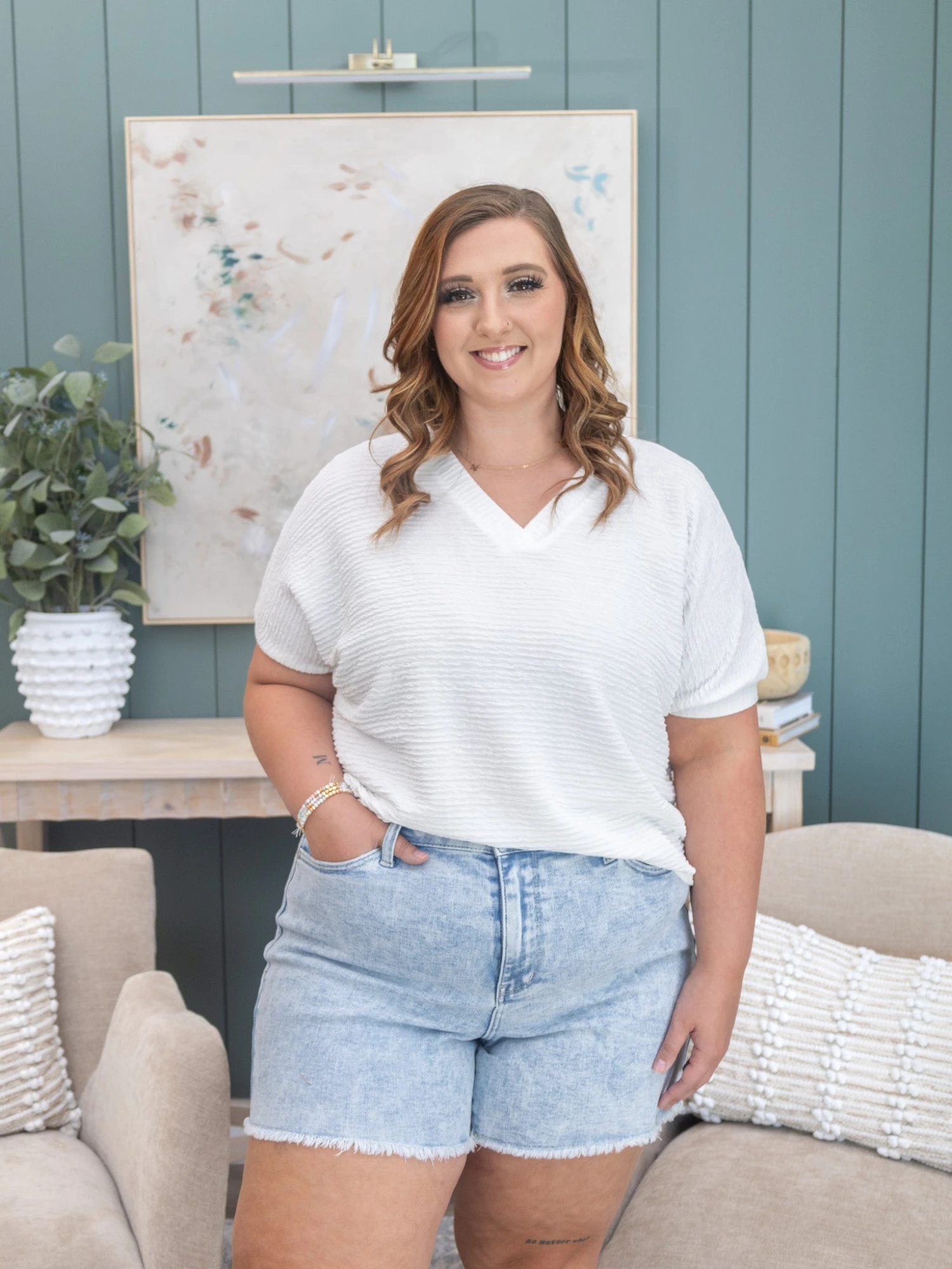 Erin is 5’8, 36C bra, typically wears size L/XL in tops and 14/15 in denim. Wearing size 1X. These are very stretchy, if you are between sizes size down.