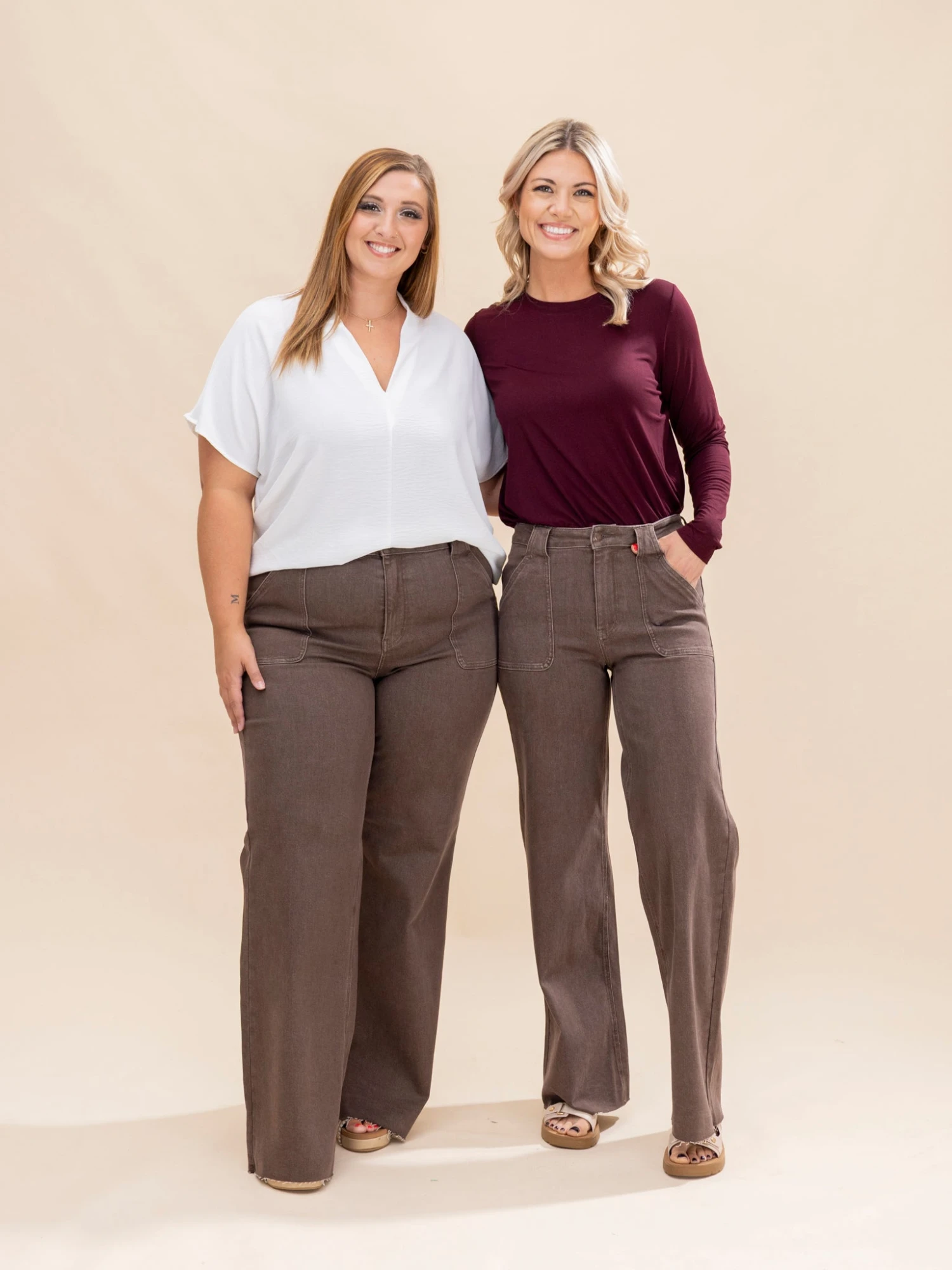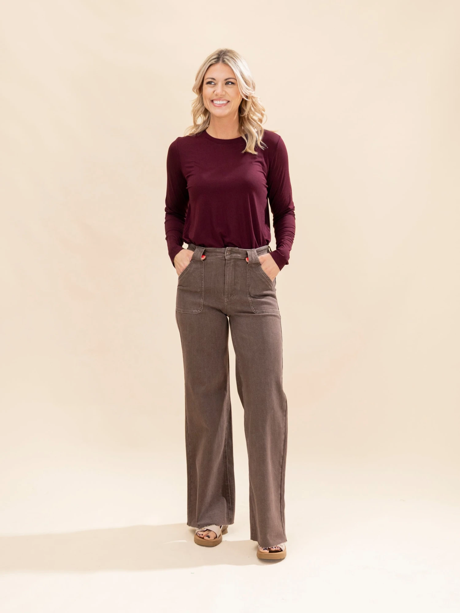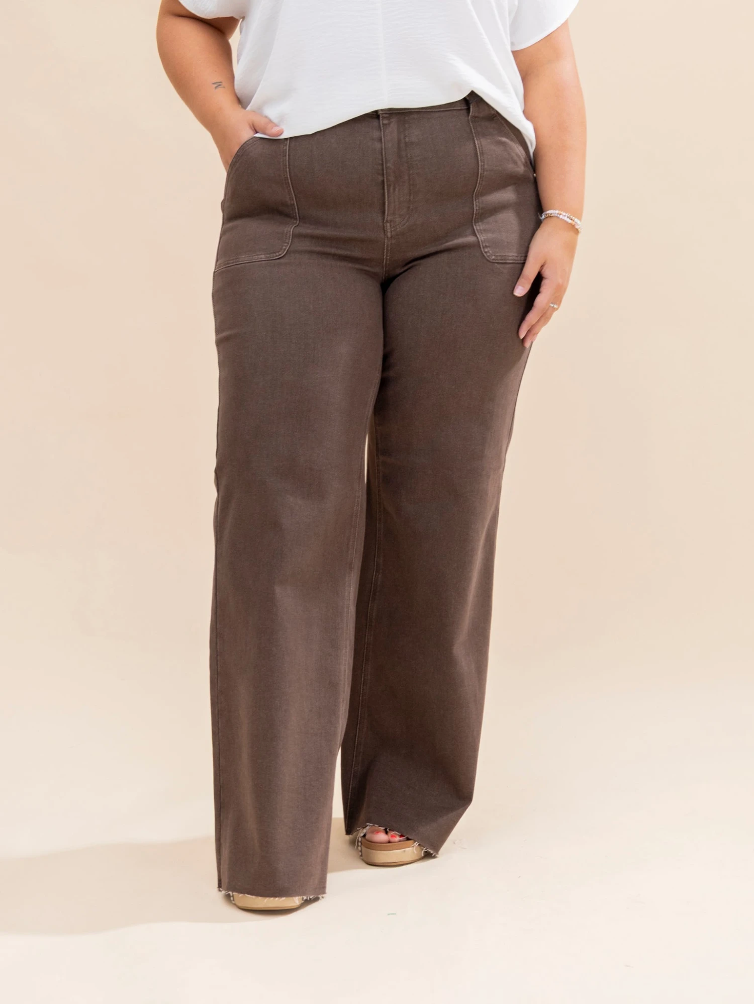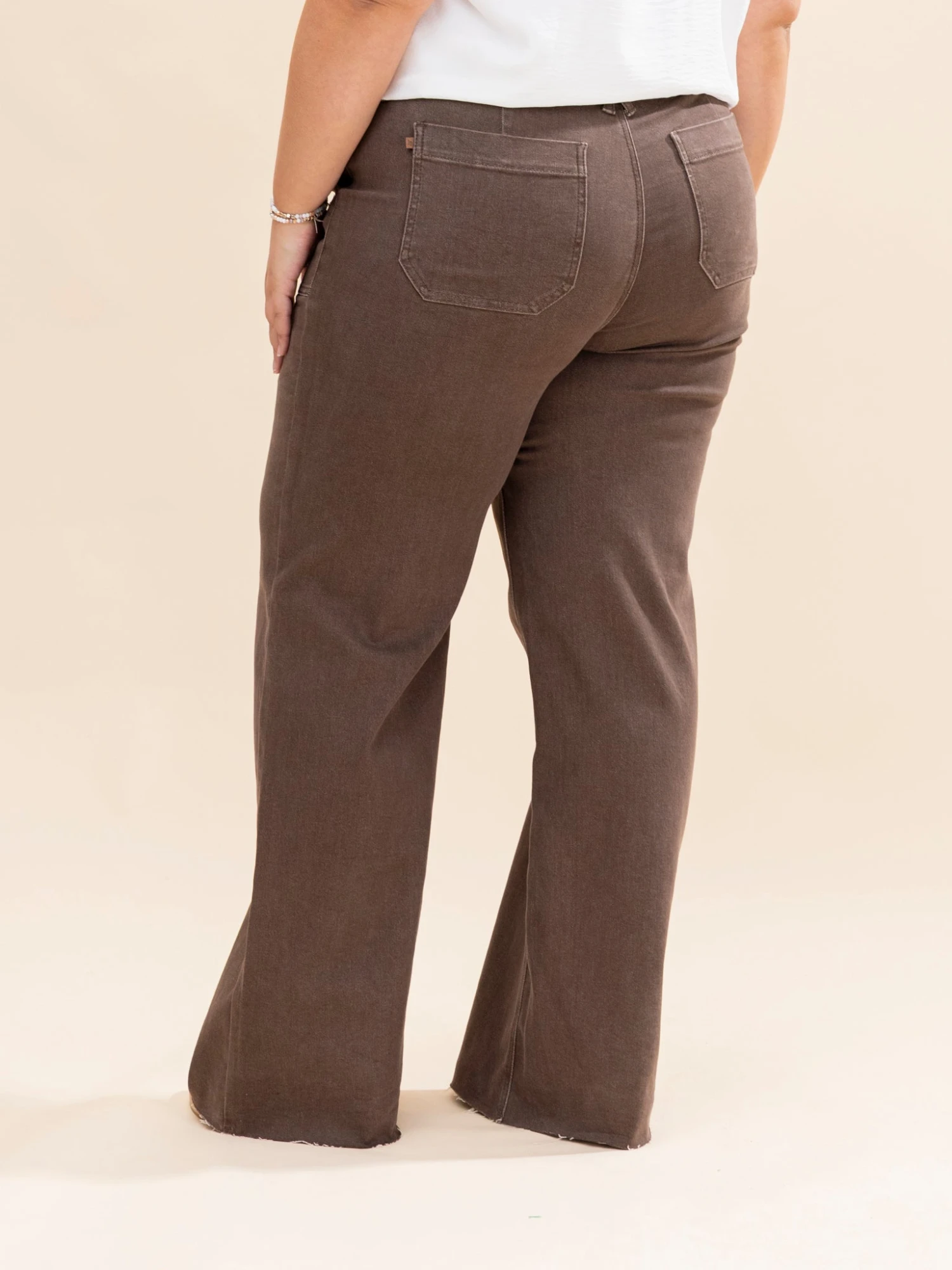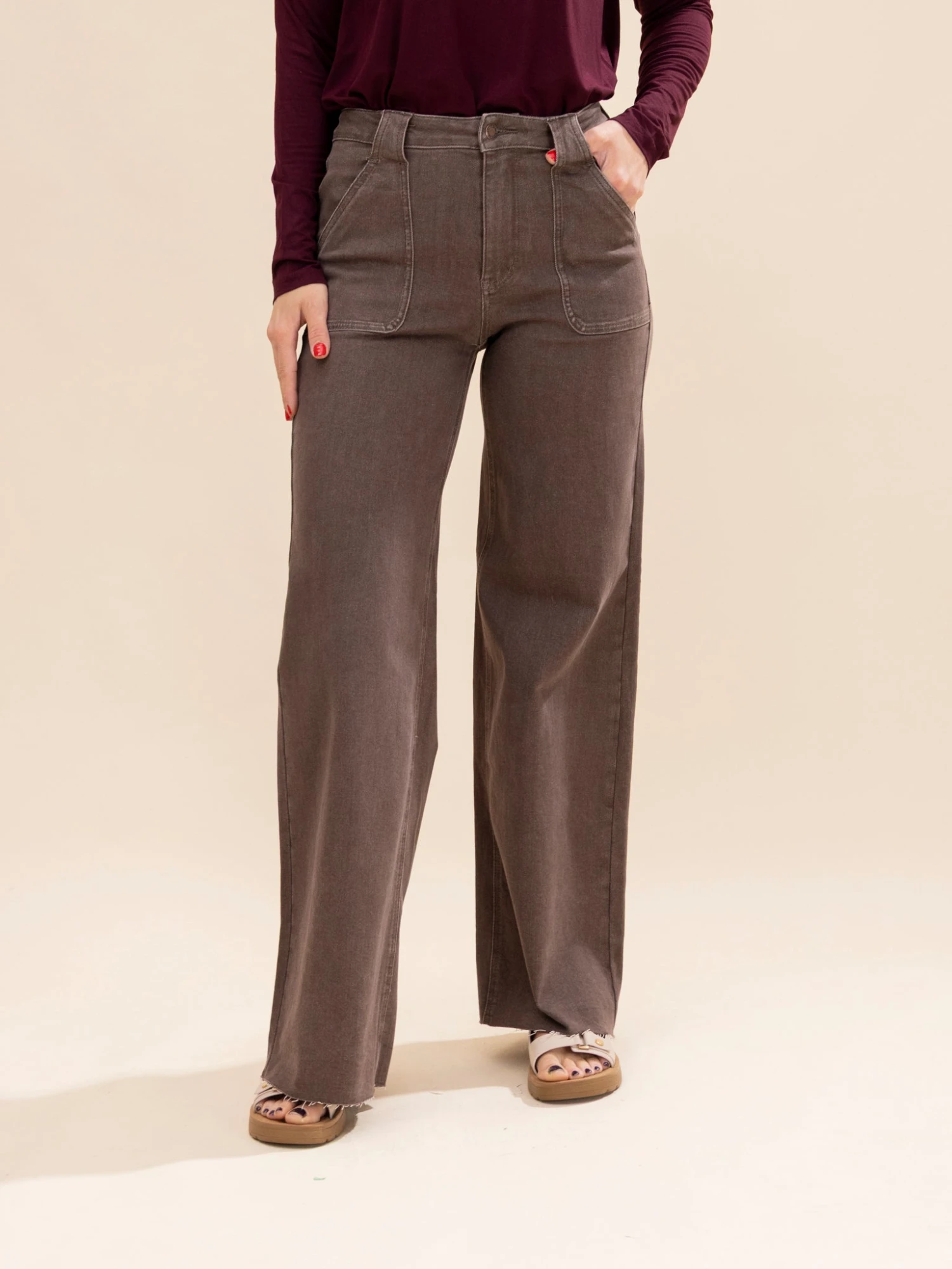 Features: High Waist, Retro Wide, Yarn Dyed, Front Patch Pockets