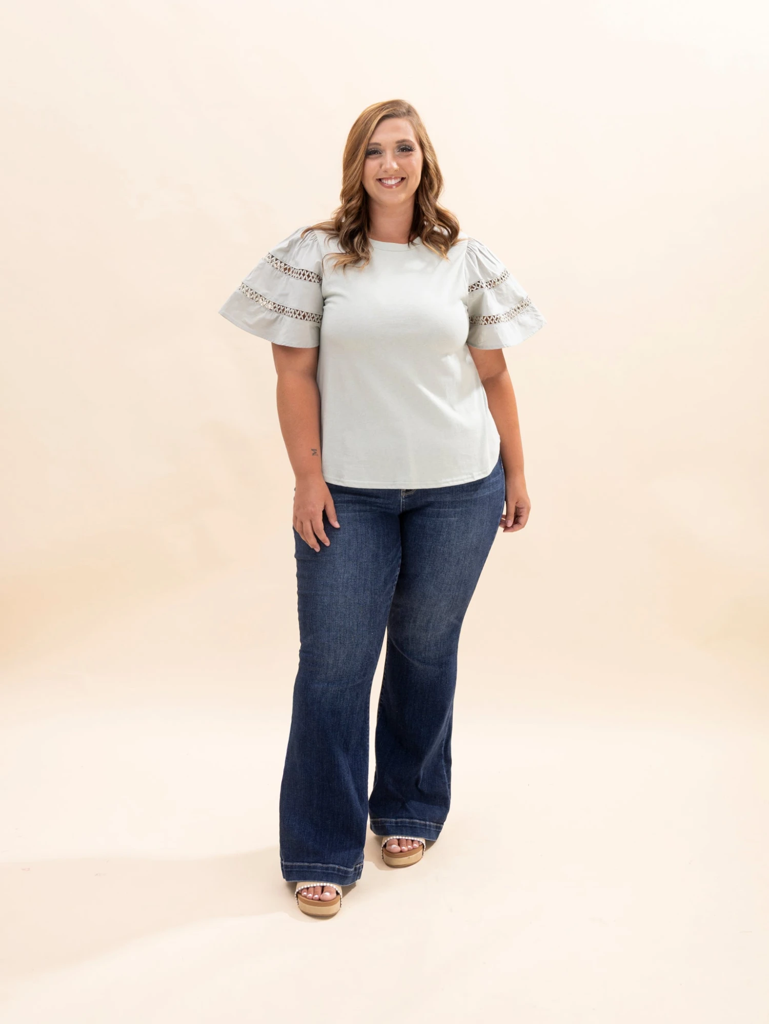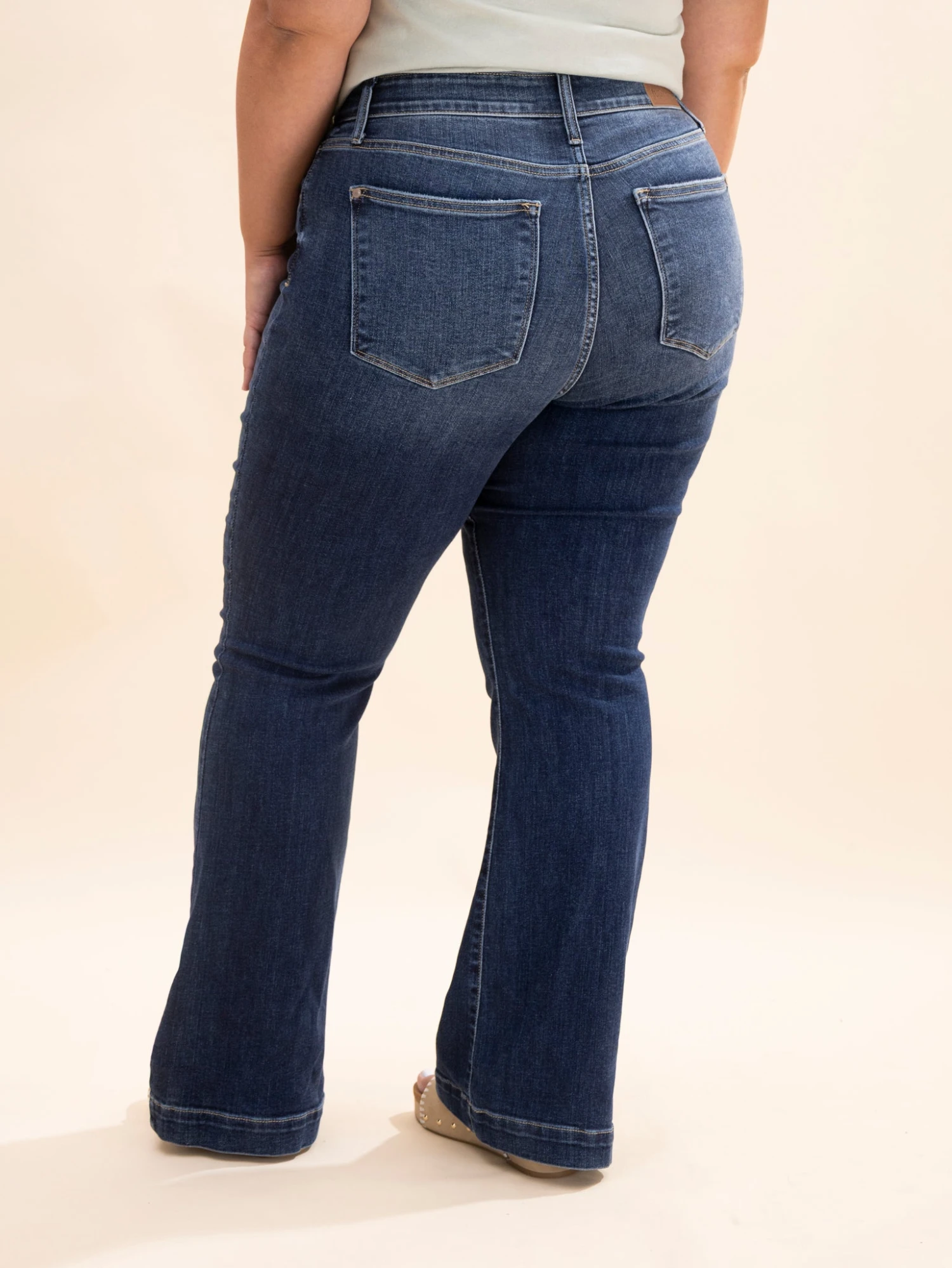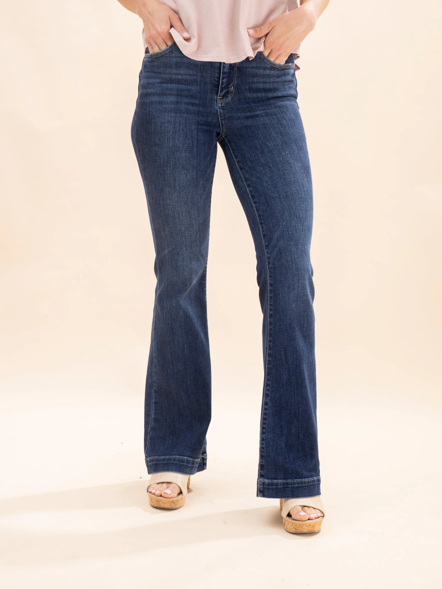 Features: Button/Zipper Waist, High Rise, Trouser Flare Leg
