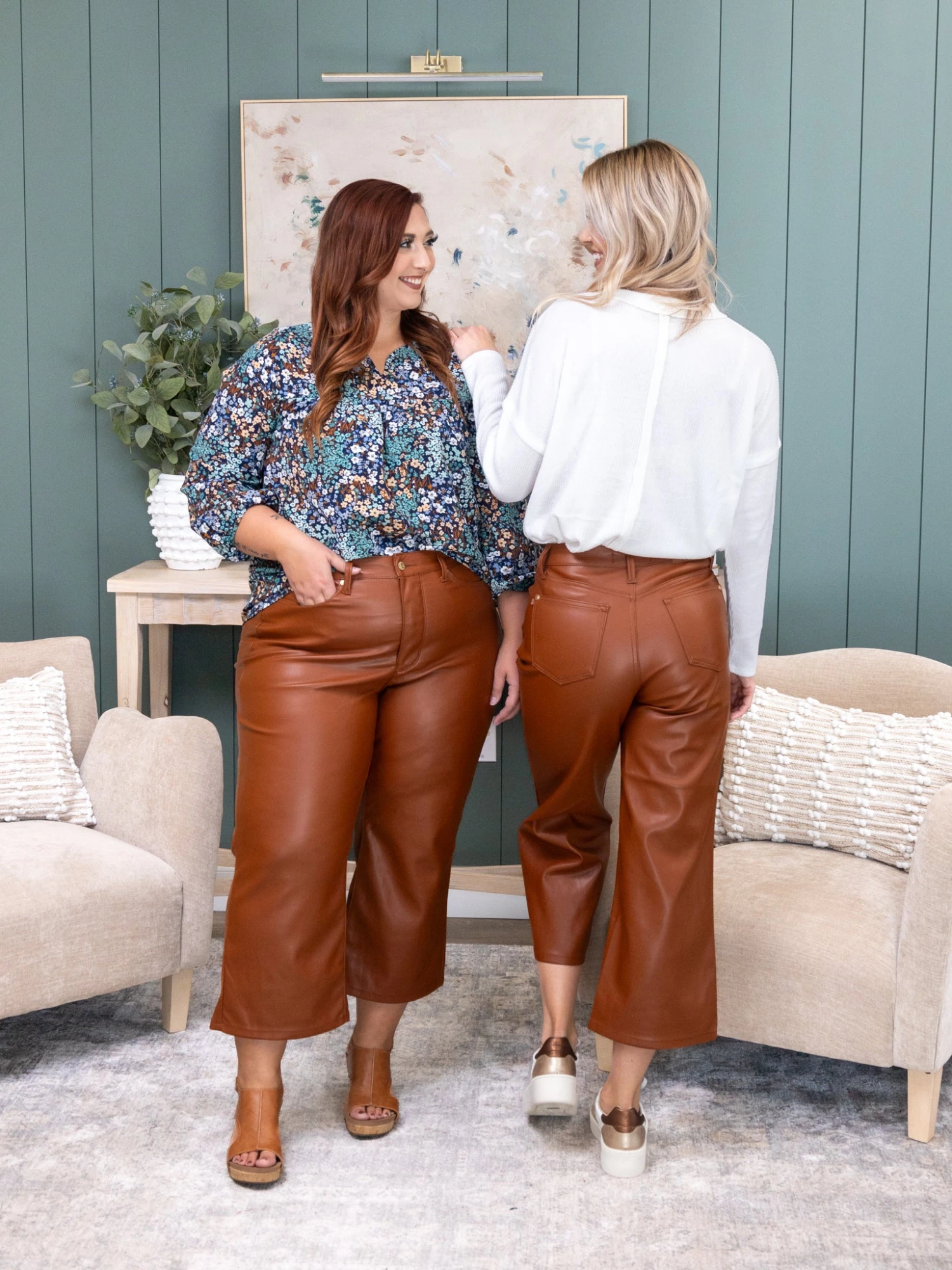 Features: Wide Leg, Faux Leather, High Waist, Cropped