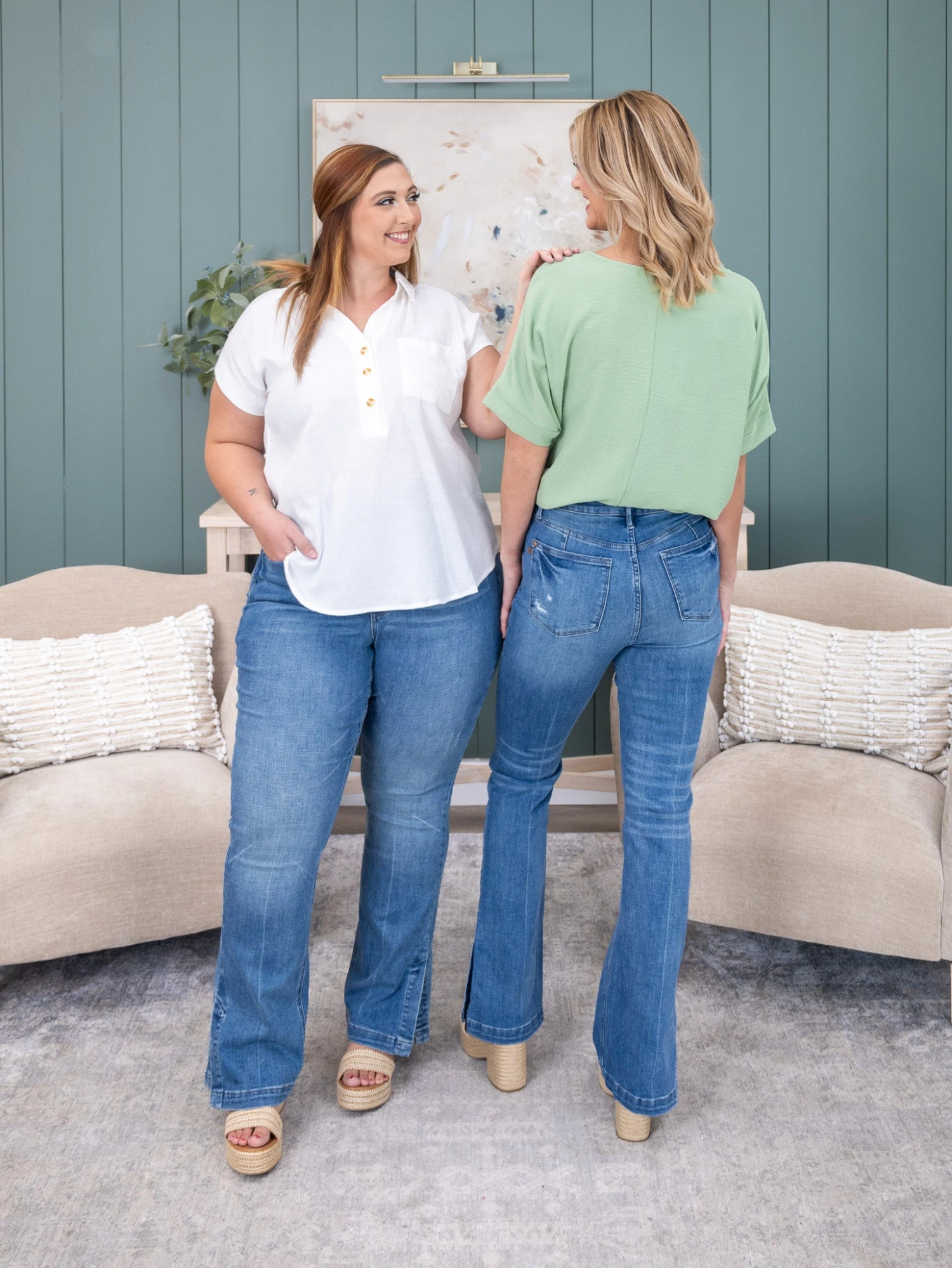 Features: High Waist, Tummy Control, Side Slits, Slim Bootcut