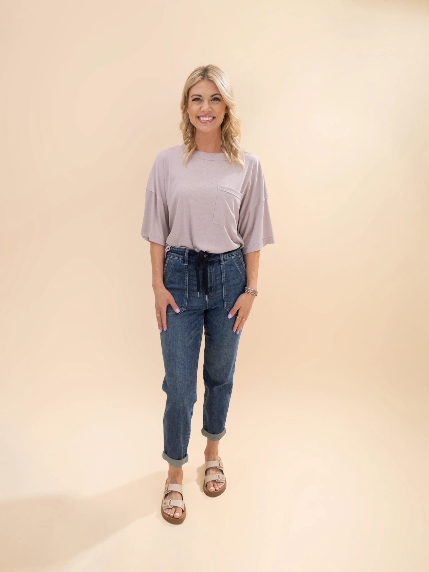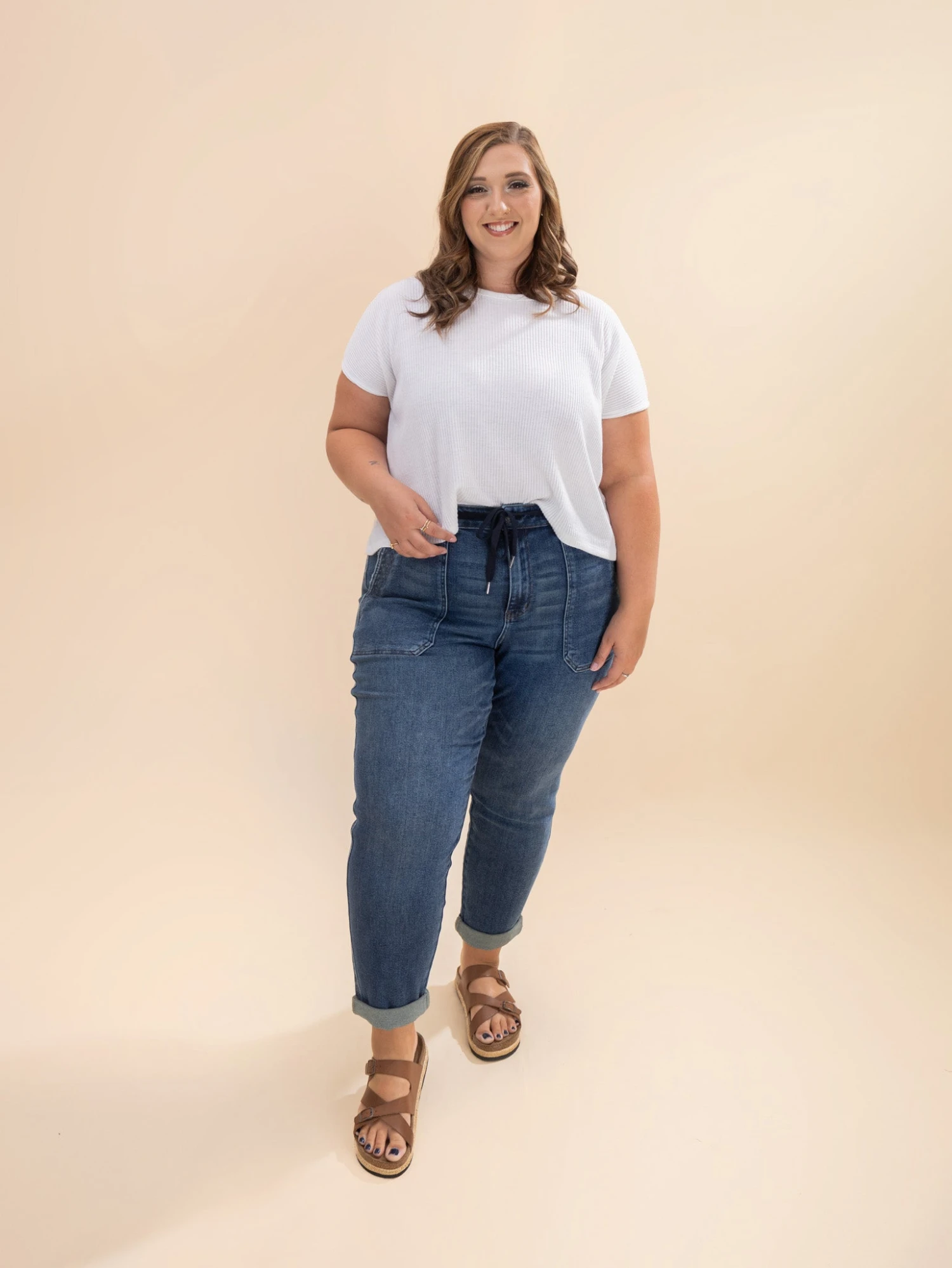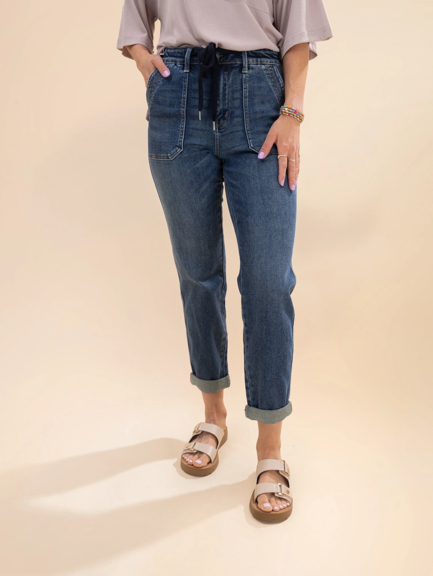 Features: Button/Zipper Waist W/ Drawstring, High Waist, Cuffed Jogger Jean
