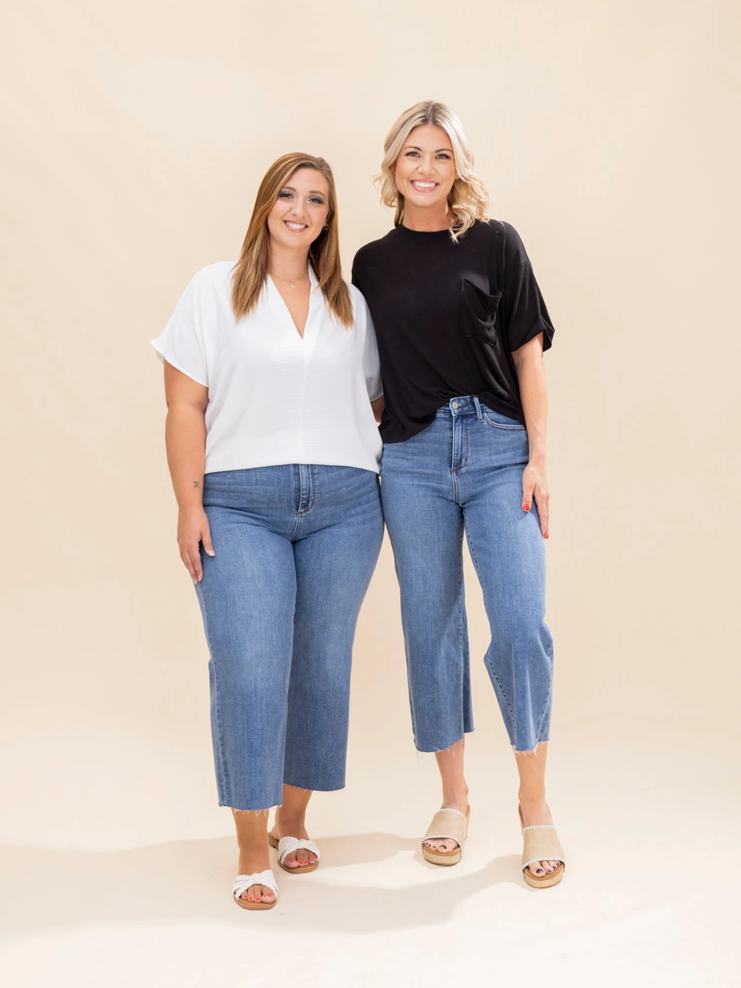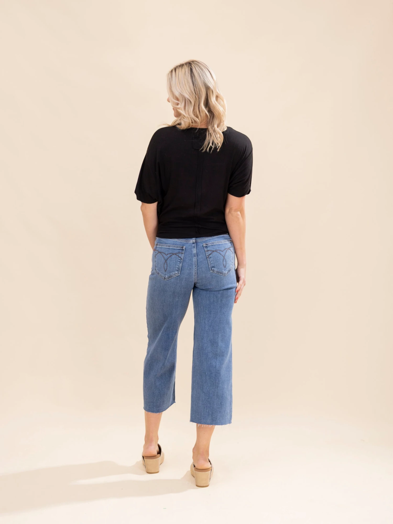 Features: High Waist, Wide Crop, Classic Raw Hem Jean