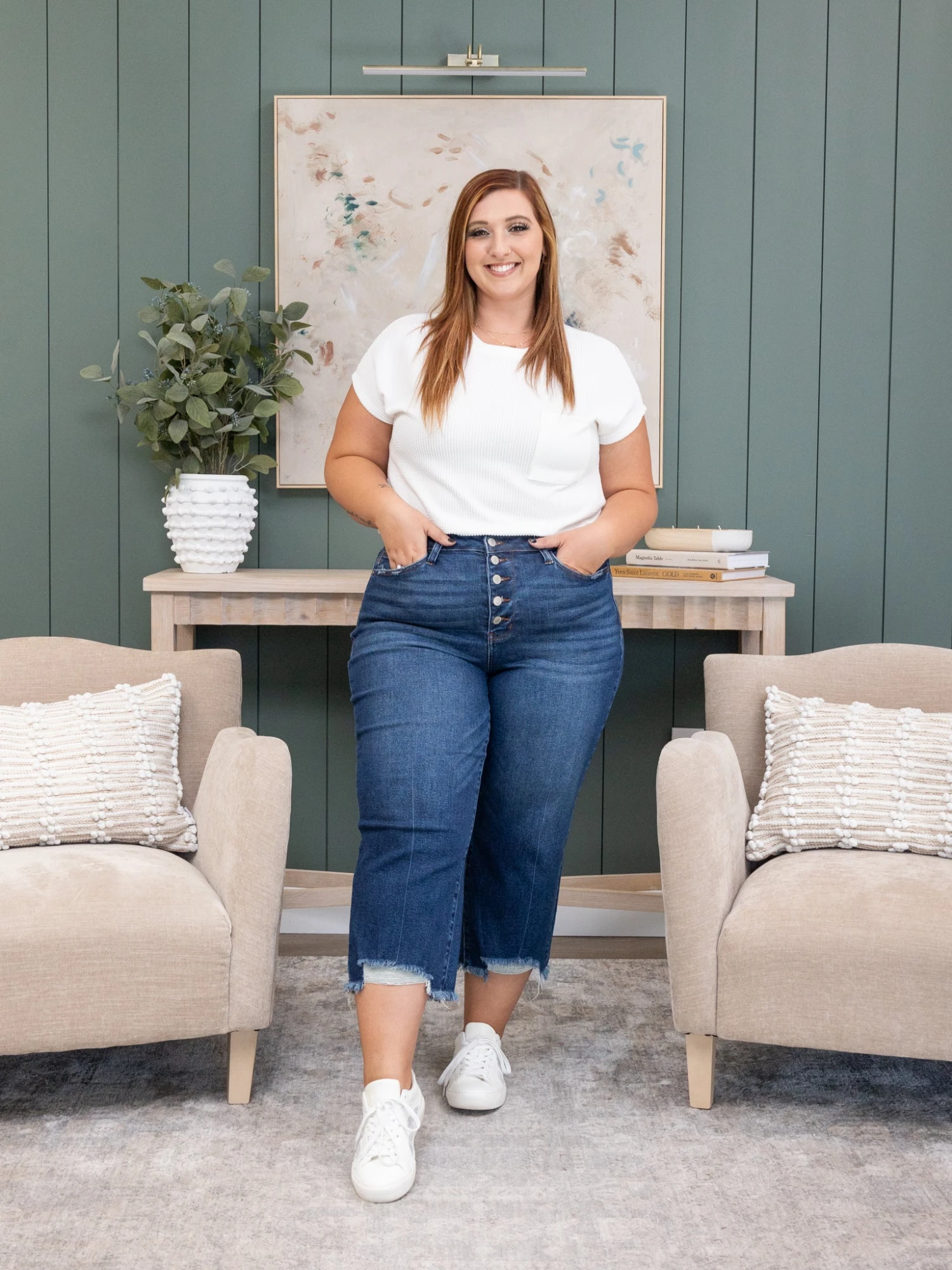 Features: Exposed Button Fly,Cropped, Wide Leg, Destroyed Hem