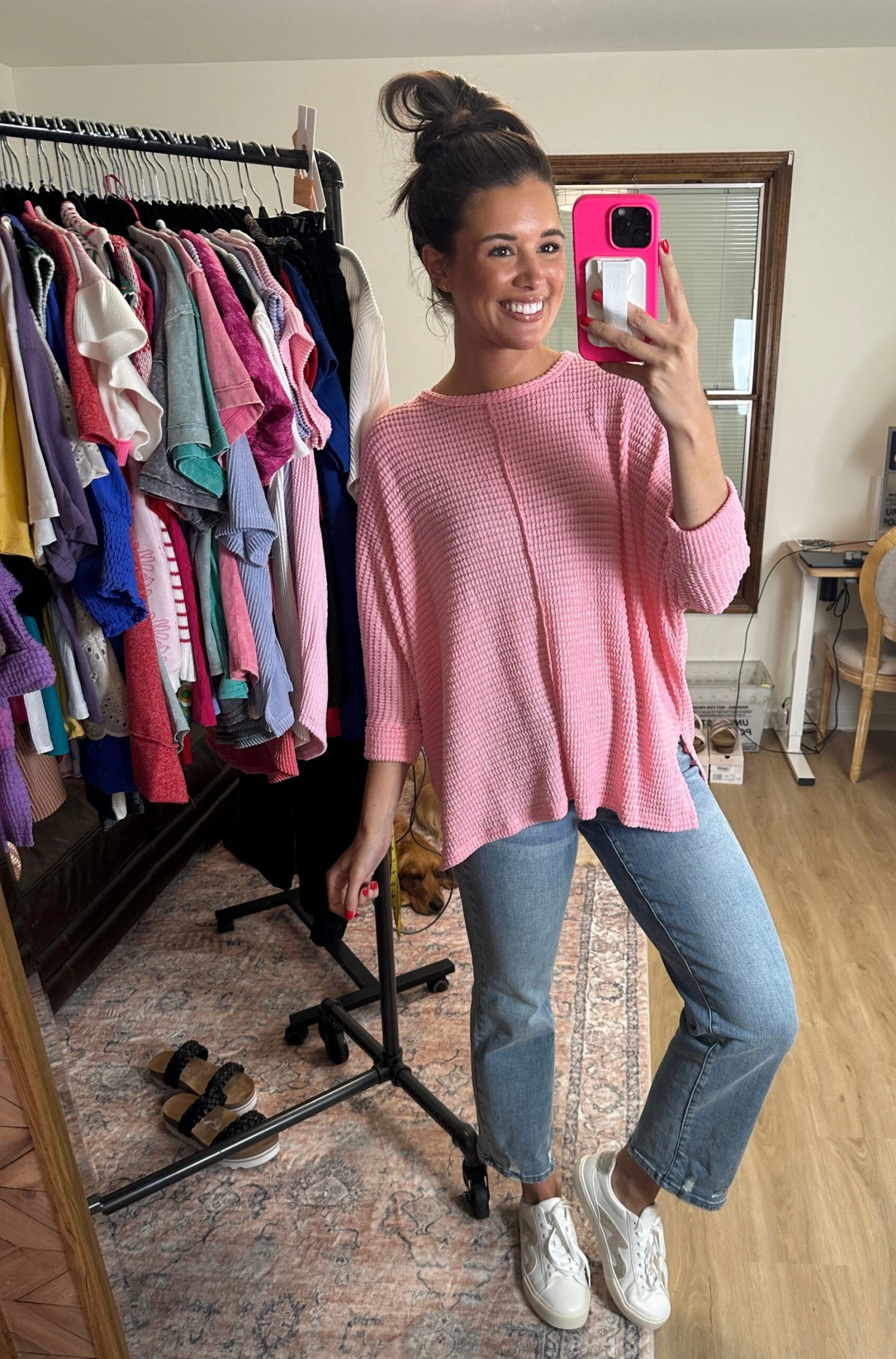 Erin is 5’8, 36C bra, typically wears size L/XL in tops and 14/16 in denim. Wearing size 16