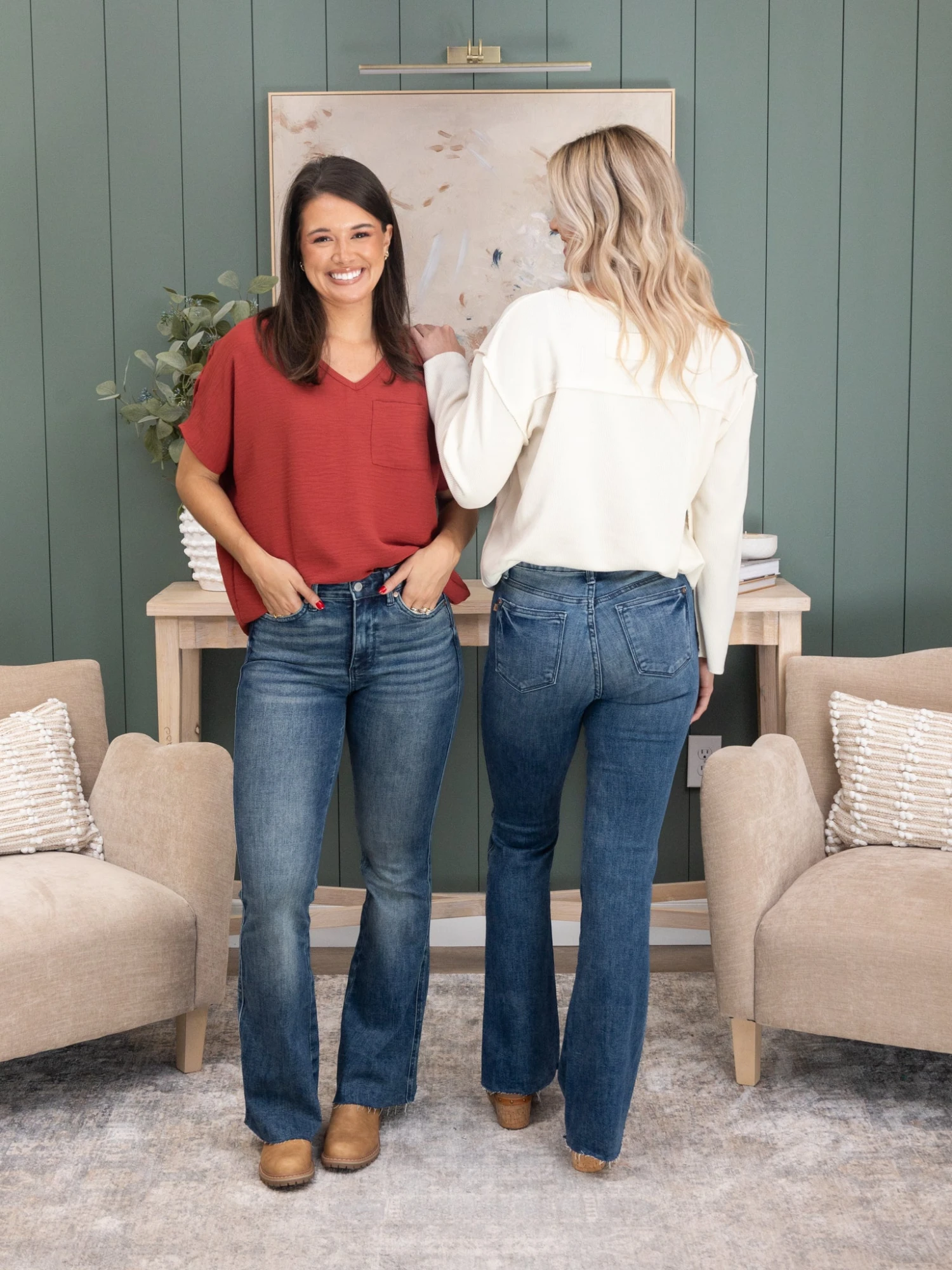 Features: Mid-Rise,Zipper Fly,Vintage Wash ,Raw Hem Flare Jean