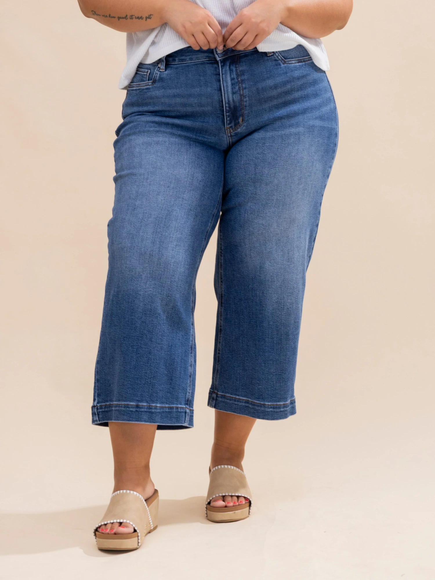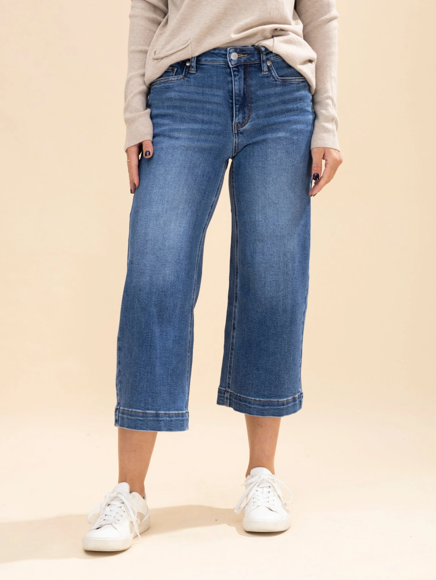 Features: Button/Zipper Waist, Mid Rise, Cropped, Wide Leg