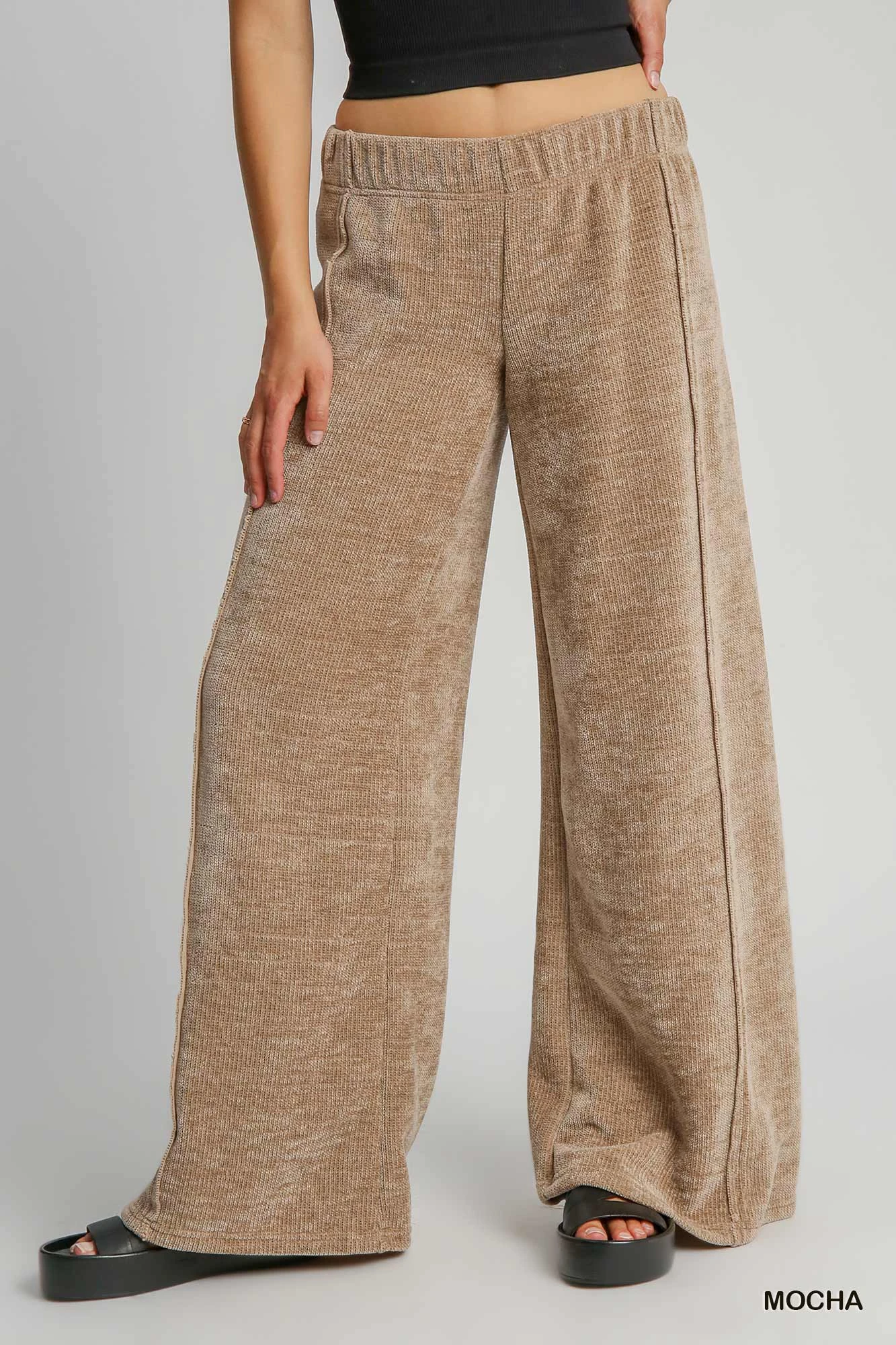 Features: Elastic Waist,Exposed Seam, Wide Leg Pant