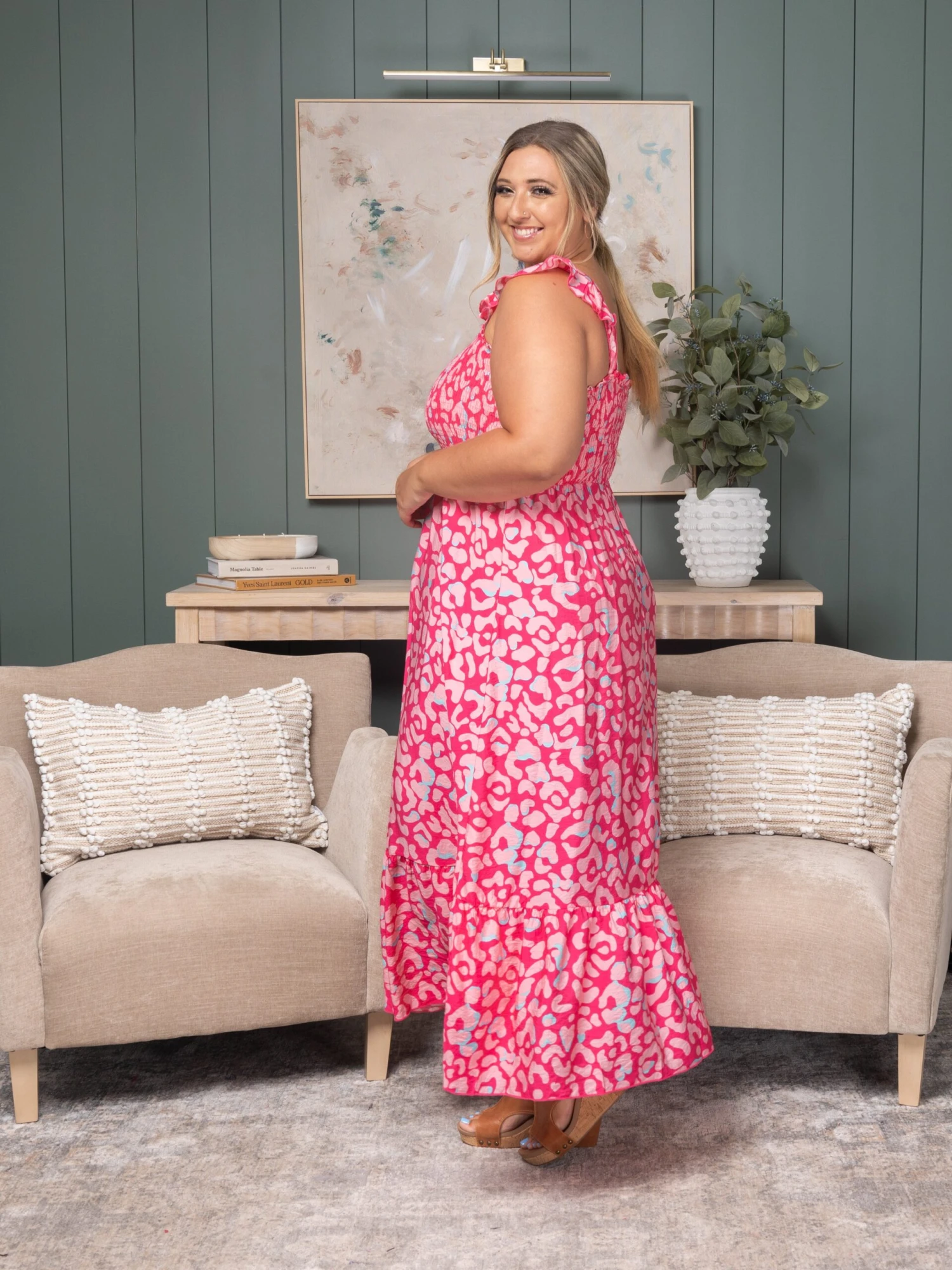 Features:Leopard Print, Straps, Smocked High Waist