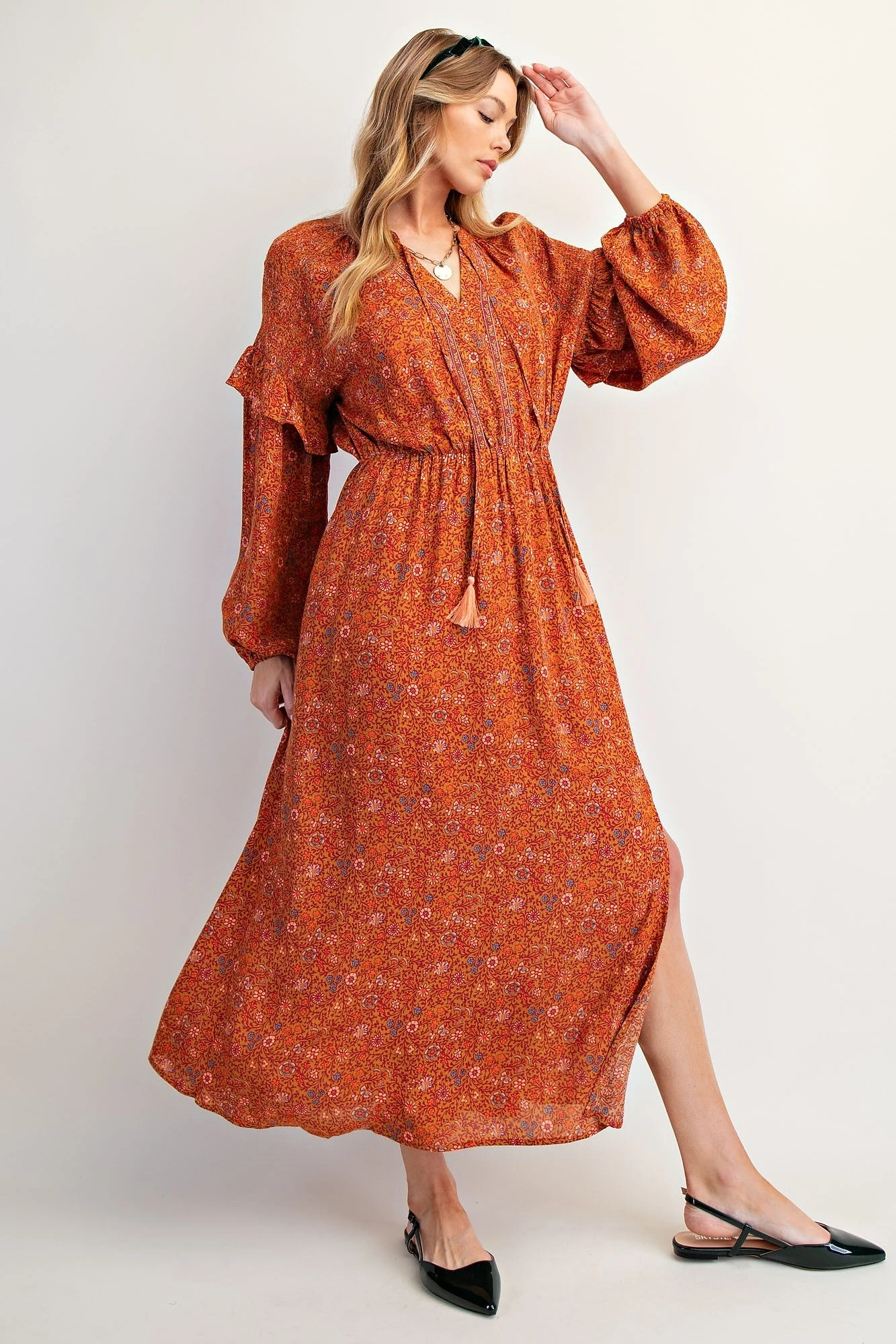 Features: Long Sleeve, Floral Print, Maxi, Dress