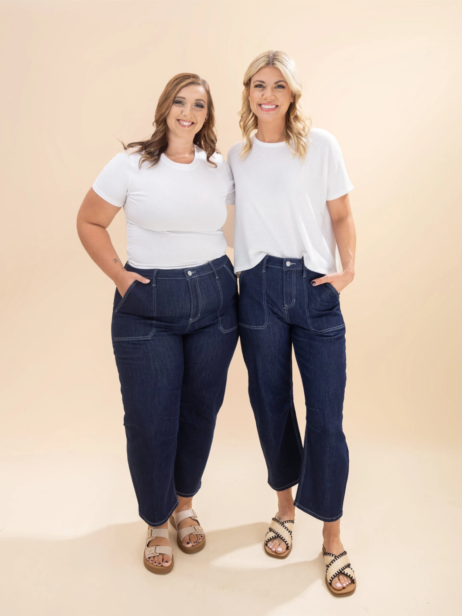Erin is 5’8, 36C bra, typically wears size L/XL in tops and 14/15 in denim. Wearing size 15