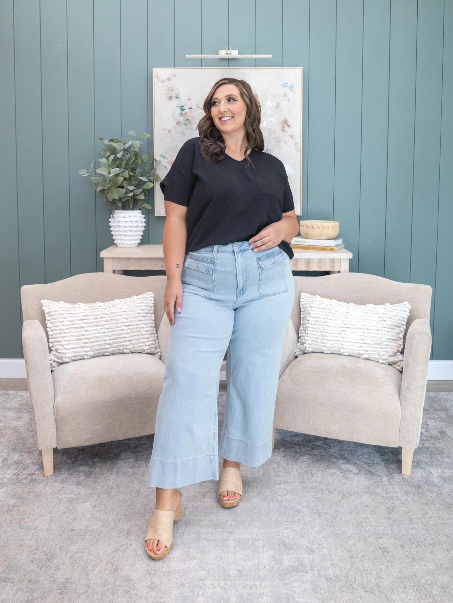 Erin is 5’8, 36C bra, typically wears size L/XL in tops and 14/15 in denim. Wearing size 15