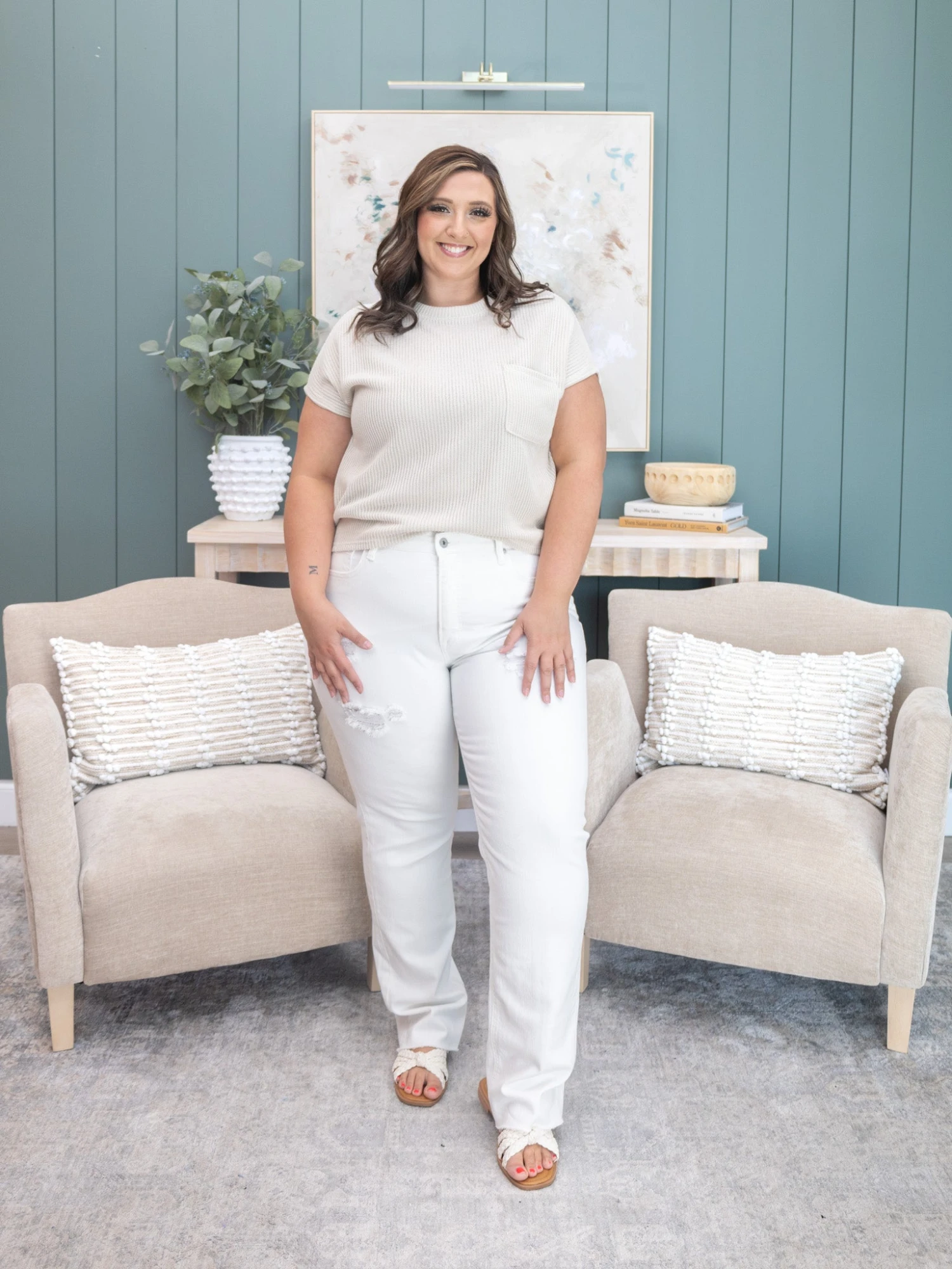 Features: Button Waist, Pockets, Raw Hem, Straight Leg, High Rise, Distressed