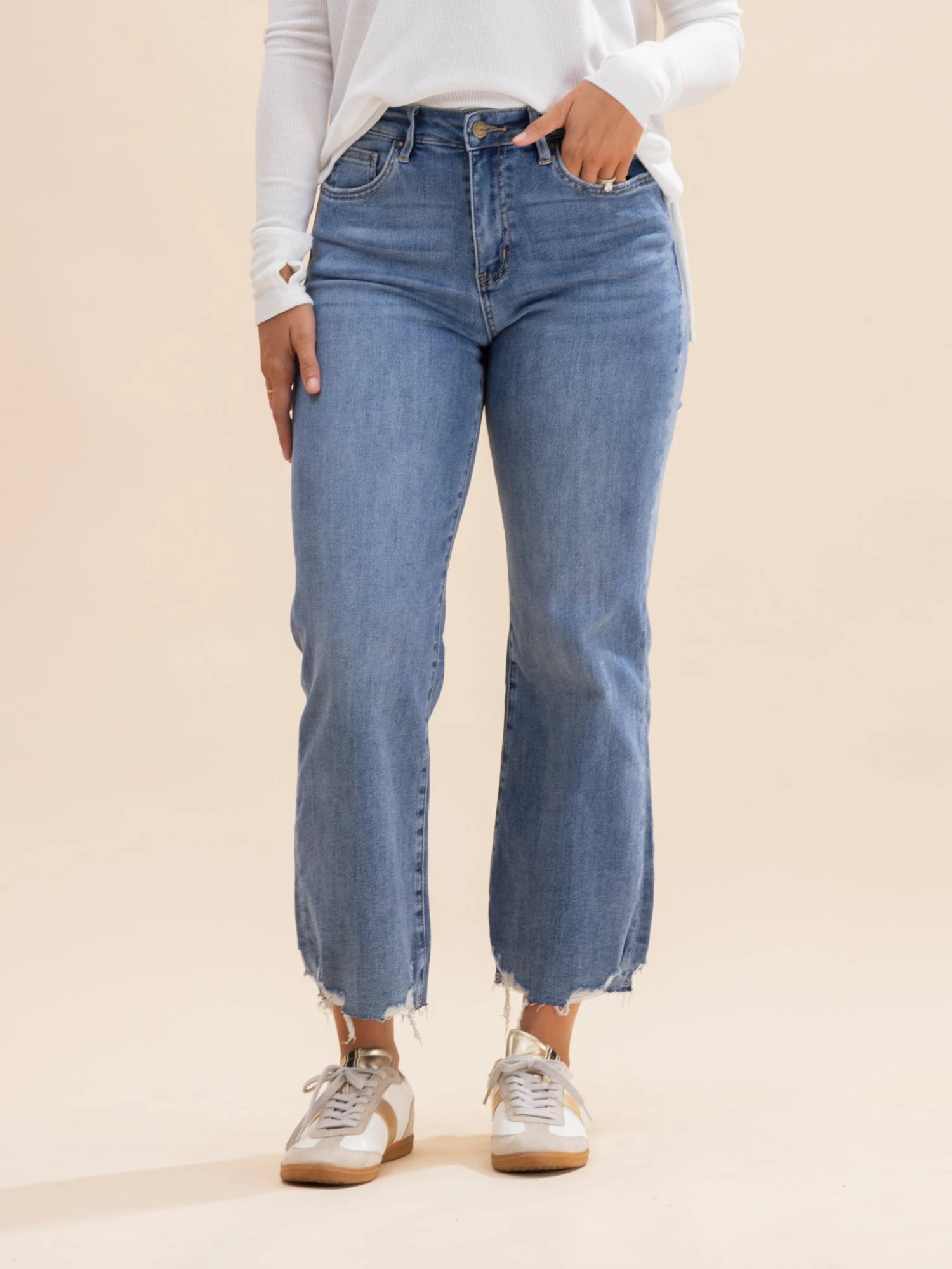 Crimsen (long blonde hair) is 5’1, 34B bra, typically wears size S in tops and 3 in denim. Wearing size 3