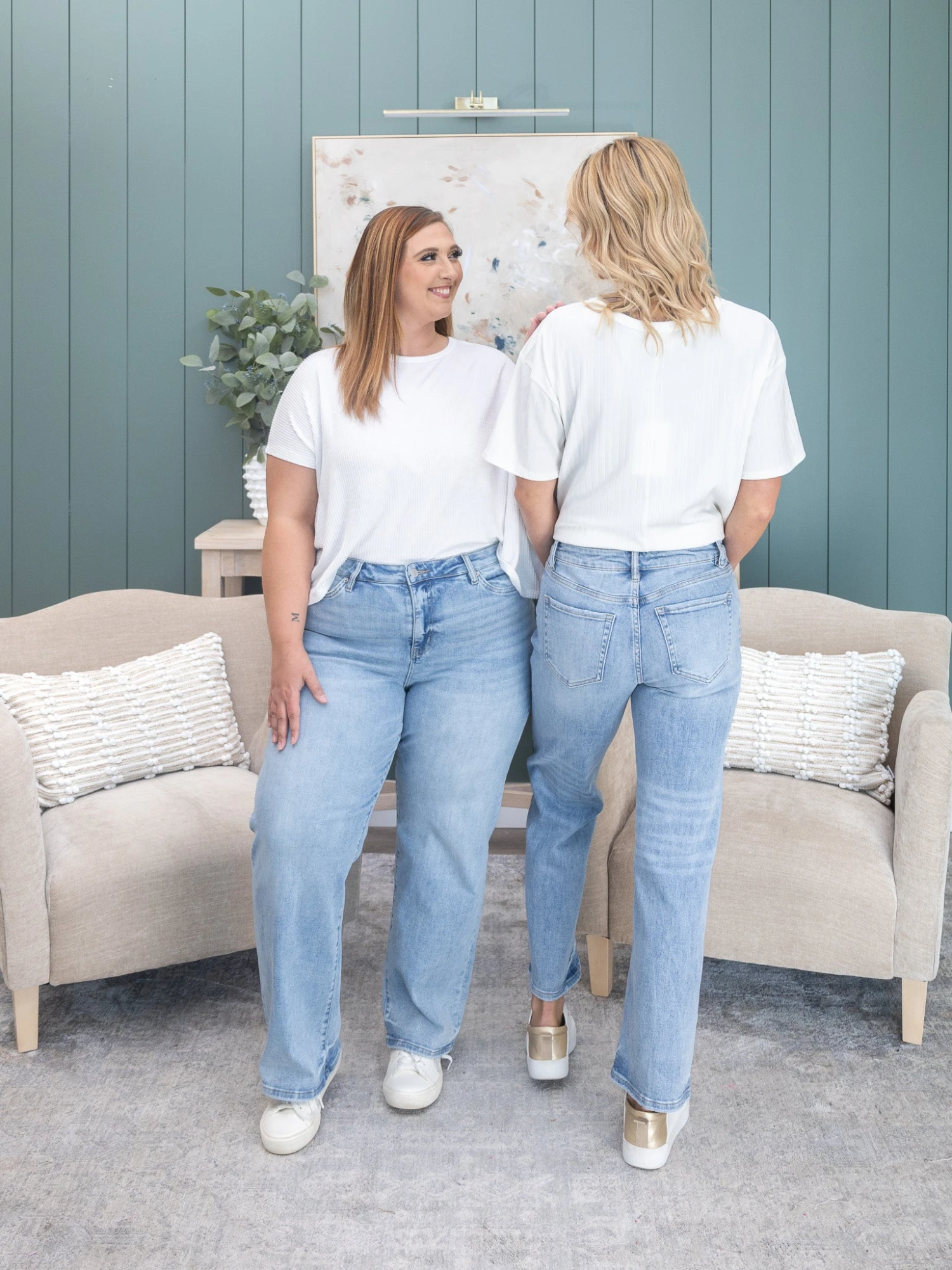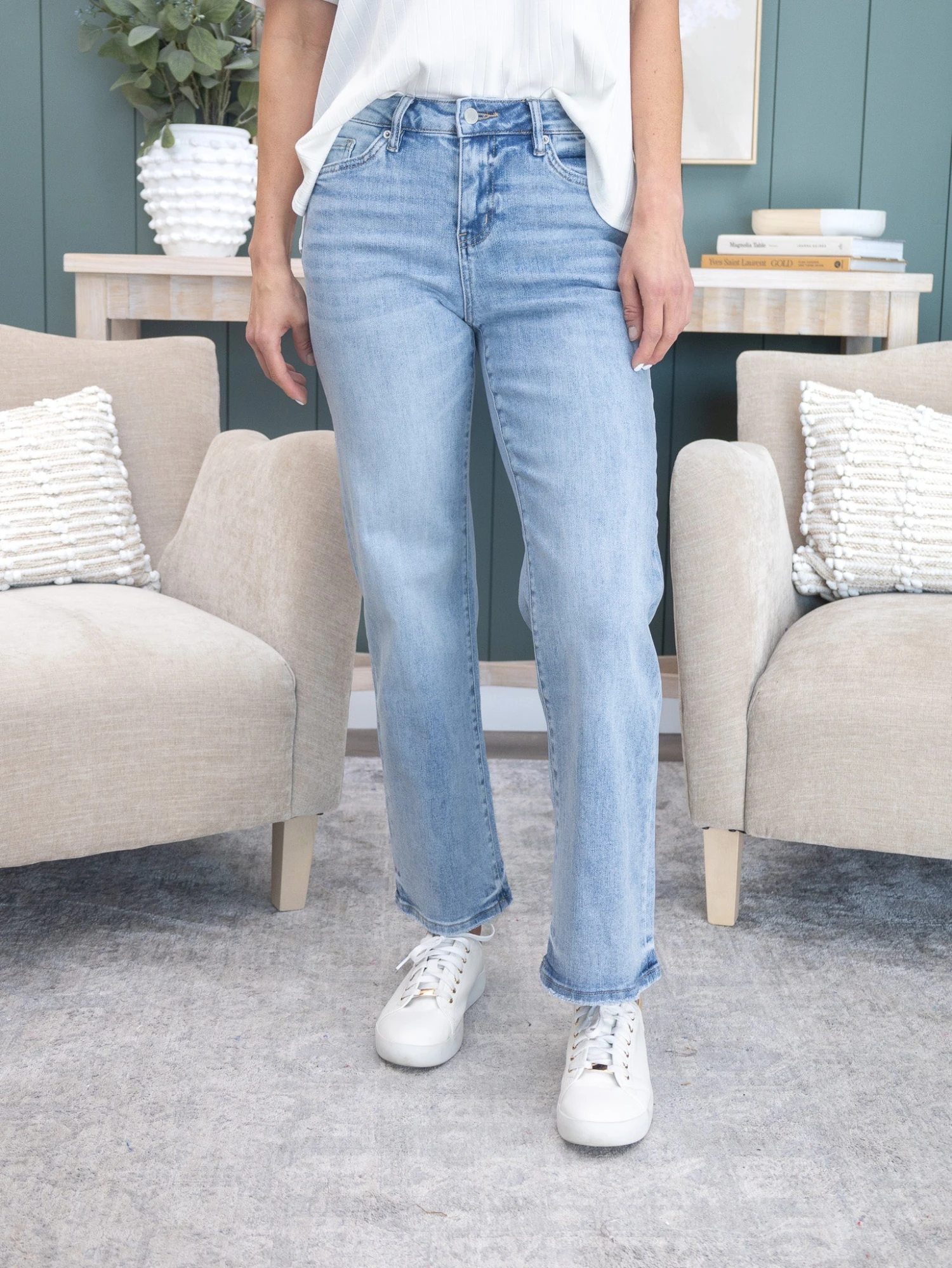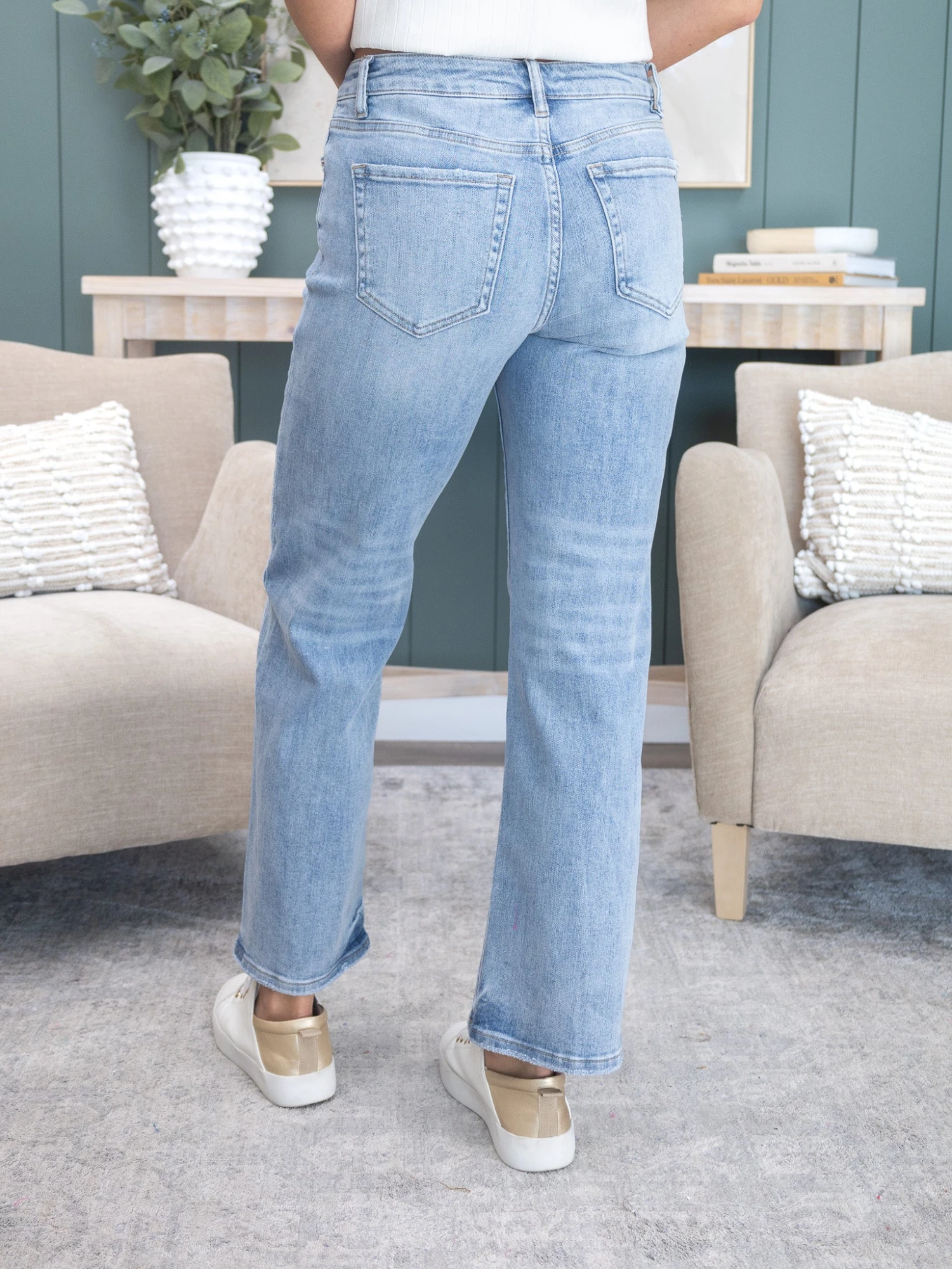 Features: Button/Zipper Fly, Mid Rise, Loose Fit, Straight Ankle Jean