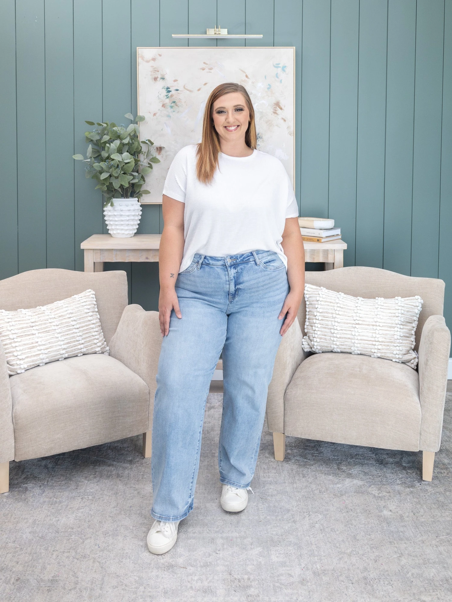 Erin is 5’8, 36C bra, typically wears size L/XL in tops and 14/15 in denim. Wearing size 14