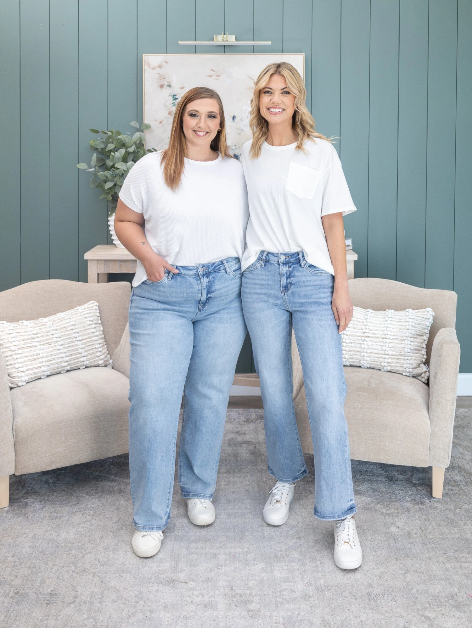 Brittany (short blonde hair) is 5’10, 36B bra, typically wears size S in tops and 3 in denim. Wearing size 3