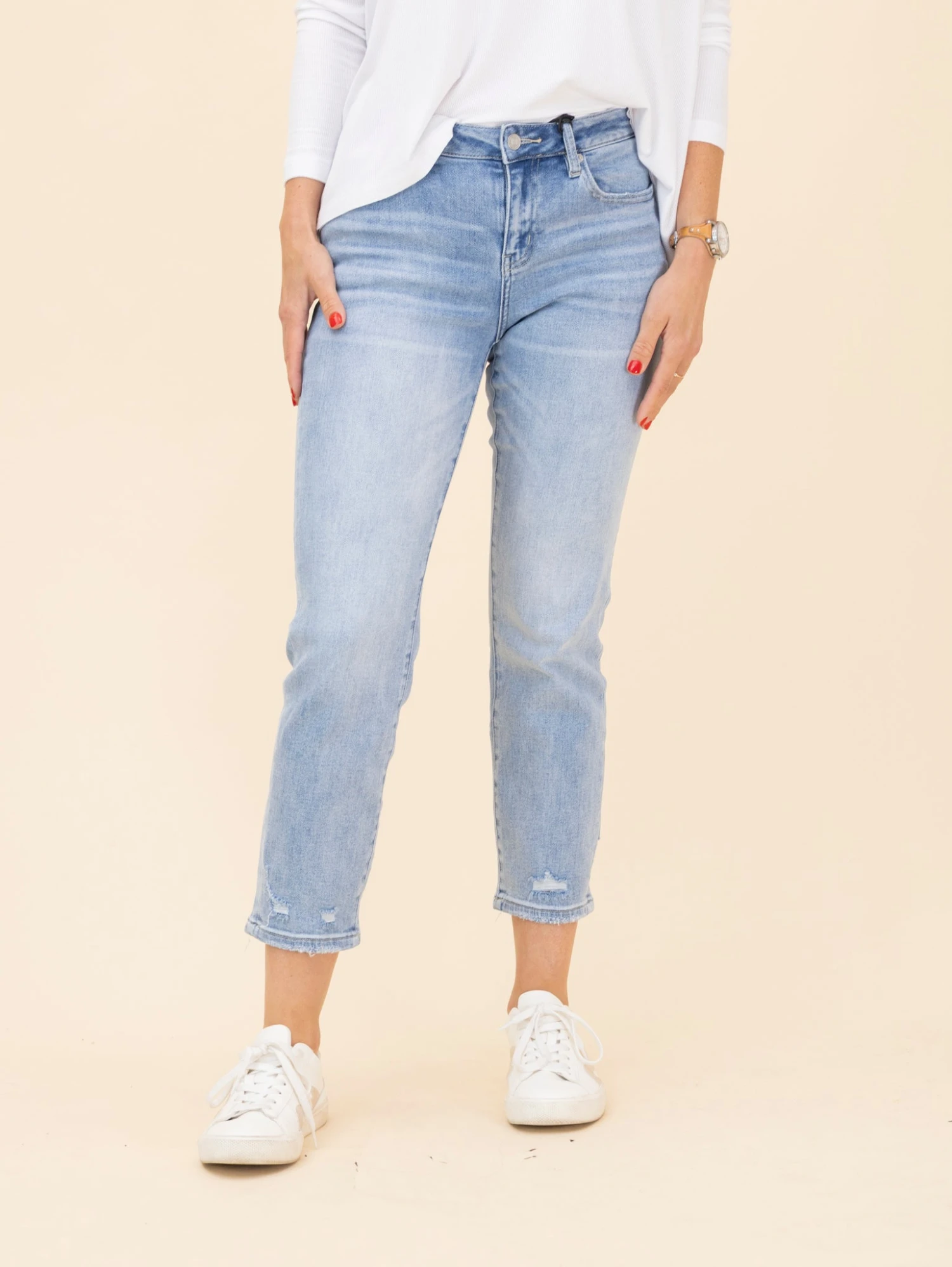 Features: Mid Rise Straight Leg Jeans