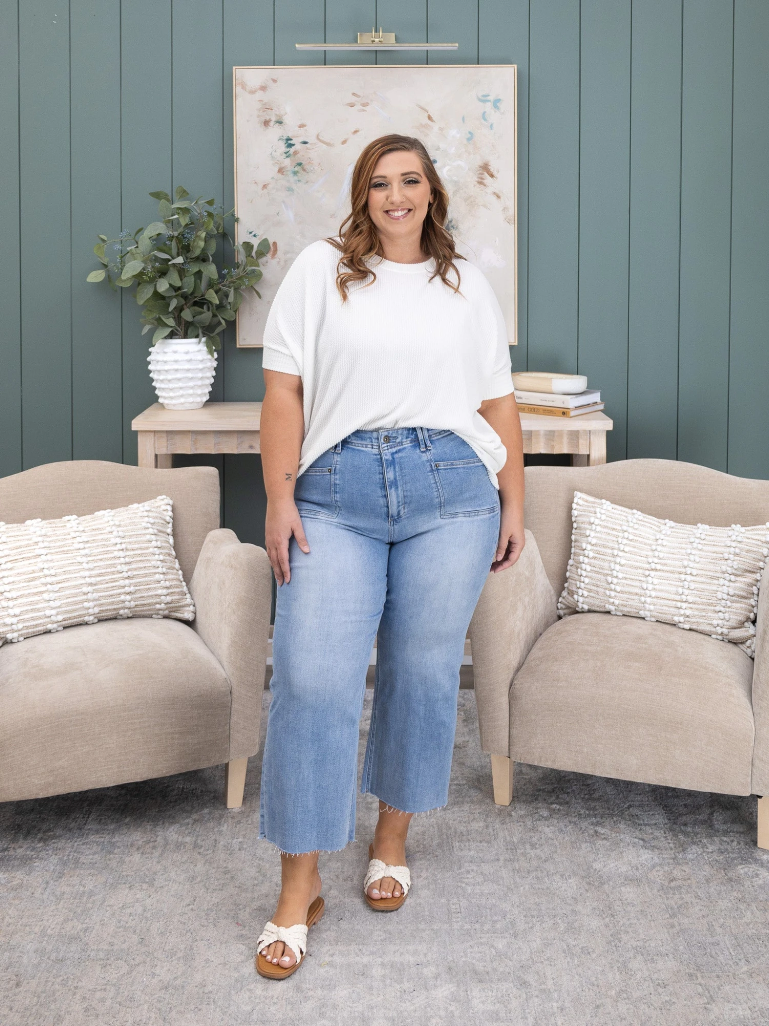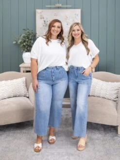 Features: Button Waist, Pockets, Cropped, Wide Leg