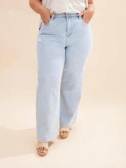 Erin is 5’8, 36C bra, typically wears size L/XL in tops and 14/15 in denim. Wearing size 15. These are a locked and loaded fit with little stretch, if you are between sizes you can size up for a looser fit.