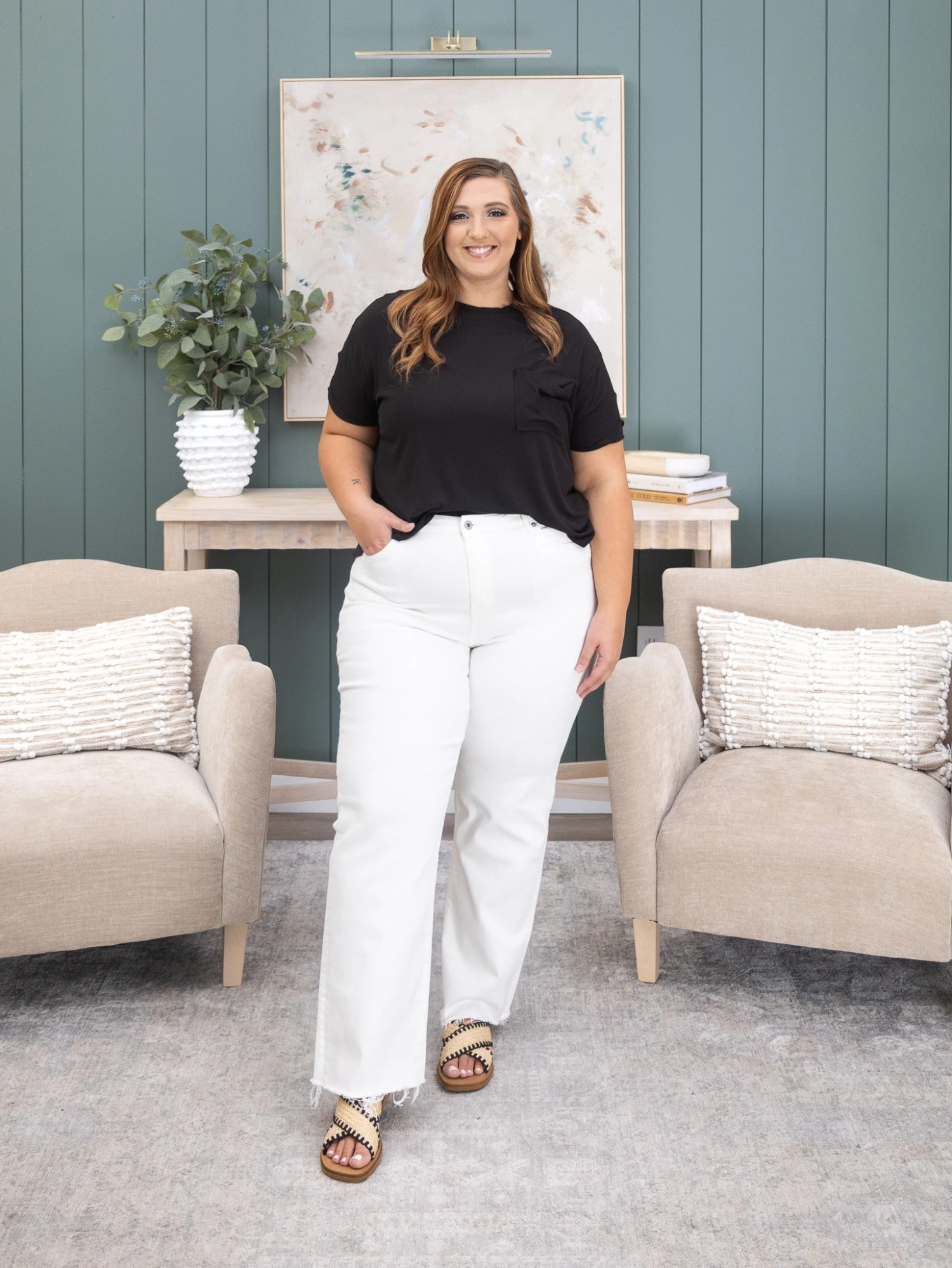 Erin is 5’8, 36C bra, typically wears size L/XL in tops and 14/15 in denim. Wearing size 15.
