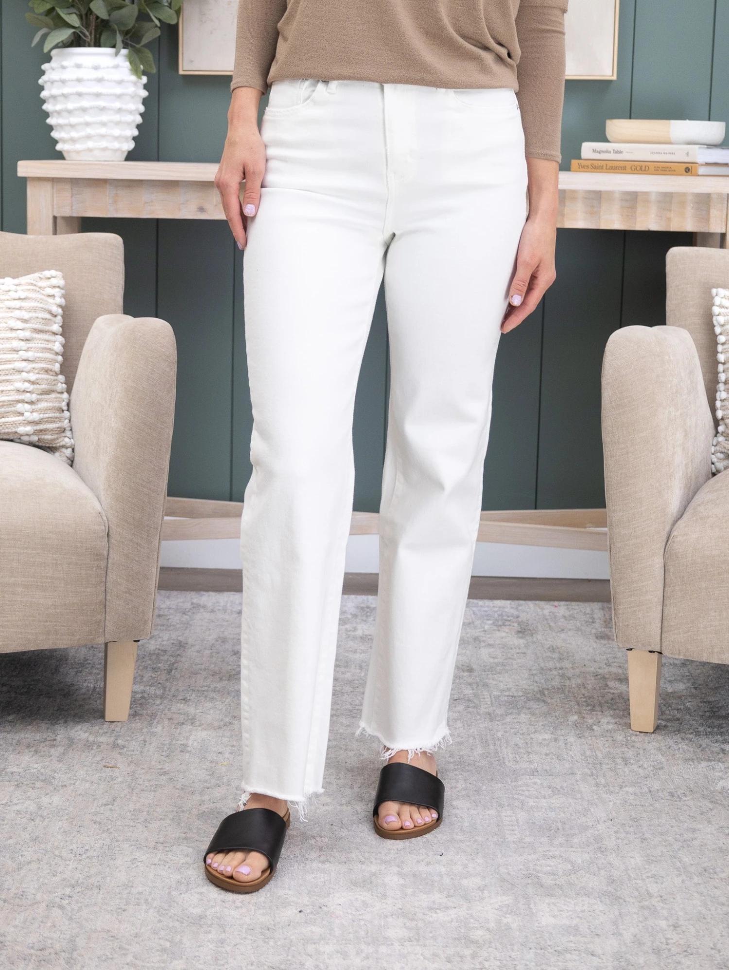 Features: Button Waist, Pockets, Wide Leg