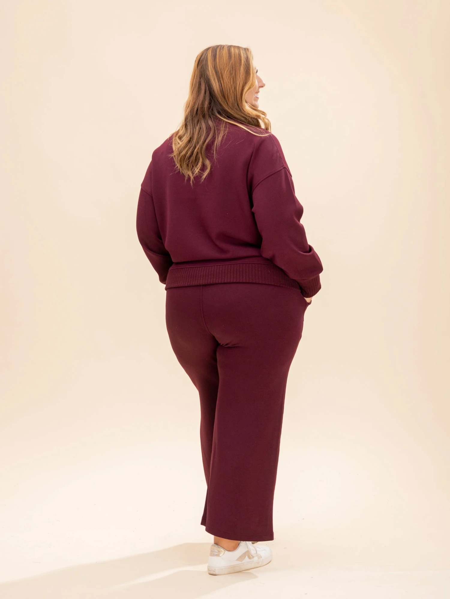Crimsen (long blonde hair) is 5’1, 34B bra, typically wears size S in tops and 3 in denim. Wearing size S